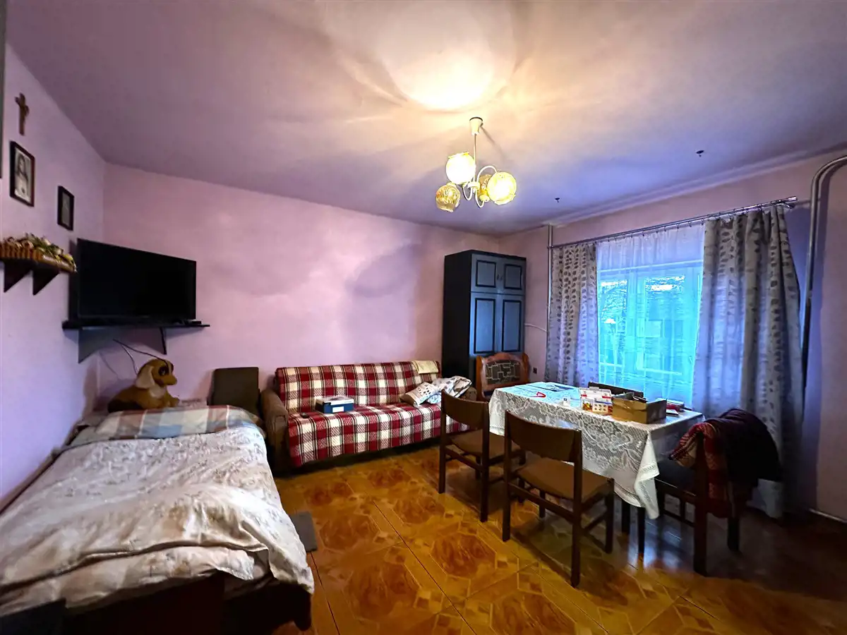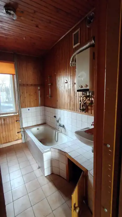 Do sprzedaży dom wolnostojący o powierzchni około 200 m2. Dom wybudowany w konstrukcji tradycyjnej z pustaka w latach 70-tych. Okna drewniane. Dach pokryty jest blachą. Dom uzbrojony jest w gaz, wodę, kanalizacje oraz prąd. Na działce znajduję się również studnia. Dom ogrzewany jest piecem węglowym. Woda na parterze ogrzewana za pomocą bojlera elektrycznego, z kolei woda na piętrze ogrzewana jest za pomocą piecyka gazowego.