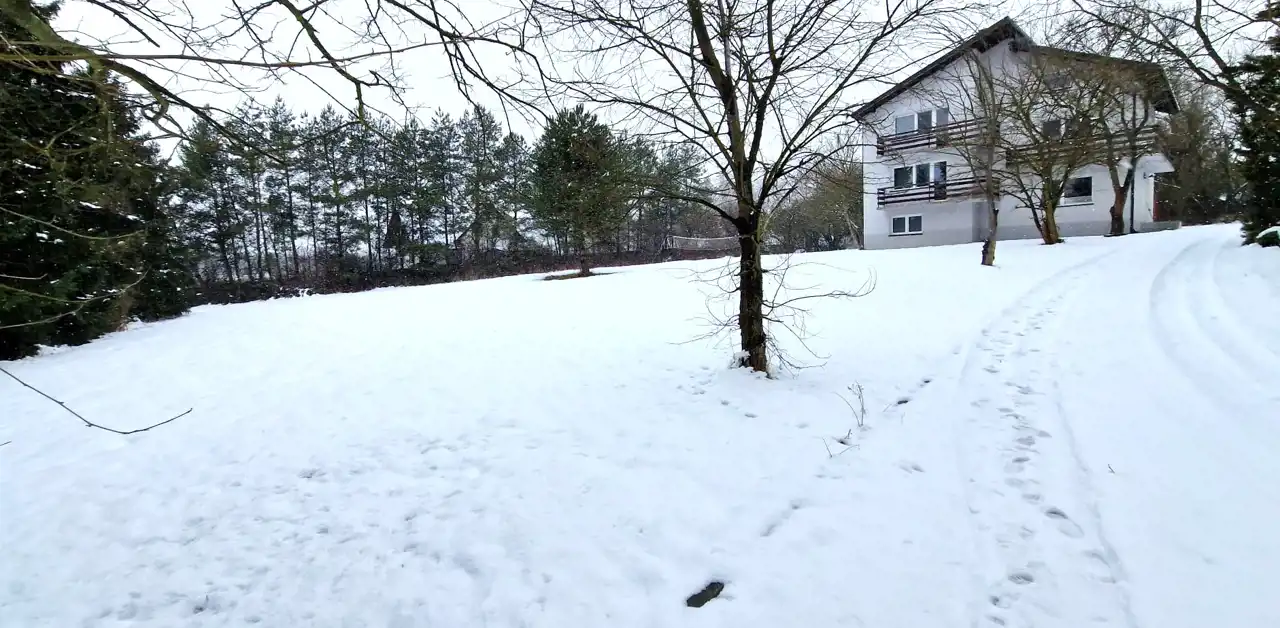 - Działka częściowo zagospodarowana, lekko nachylona, prostokąt