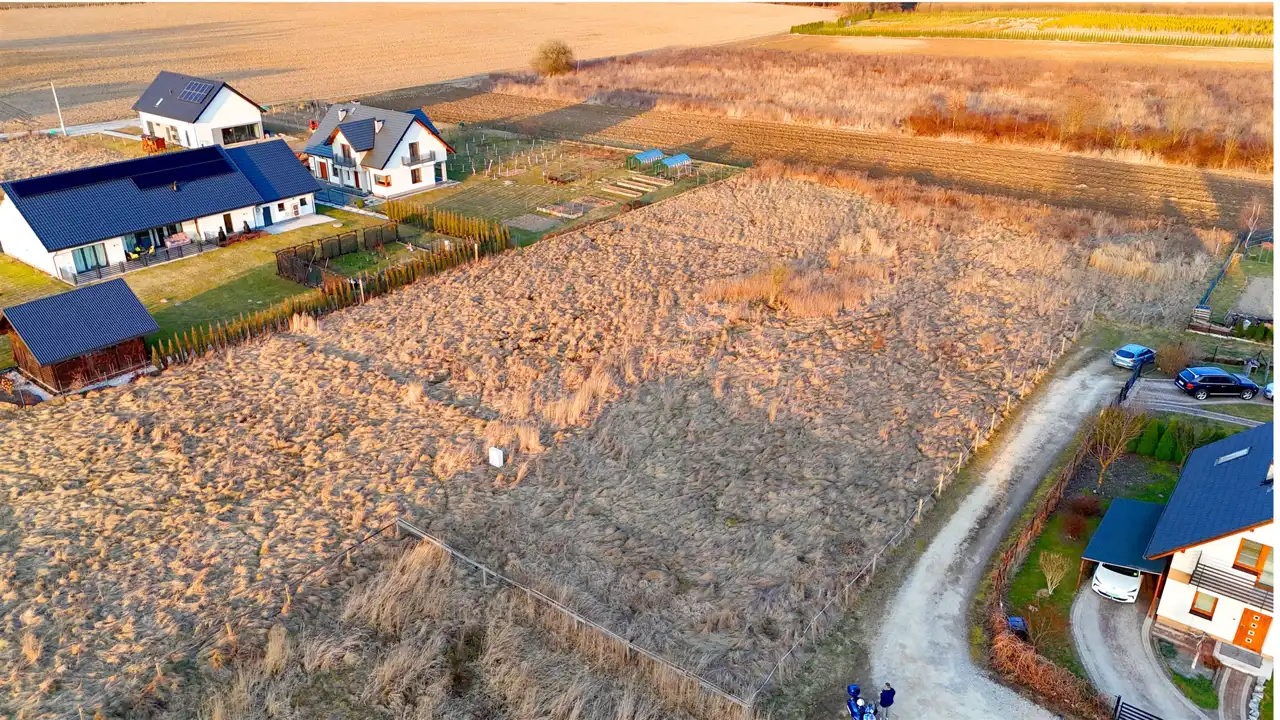 Działka położona jest w spokojnej i kameralnej części miejscowości, z dogodnym dojazdem drogą utwardzoną kruszywem. Bezpośrednie otoczenie stanowi zabudowa domów jednorodzinnych oraz tereny otwarte i pola, co zapewnia poczucie przestrzeni, ciszę i komfort codziennego funkcjonowania. To miejsce dla osób, które chcą połączyć bliskość Krakowa z bardziej spokojnym, podmiejskim charakterem lokalizacji.