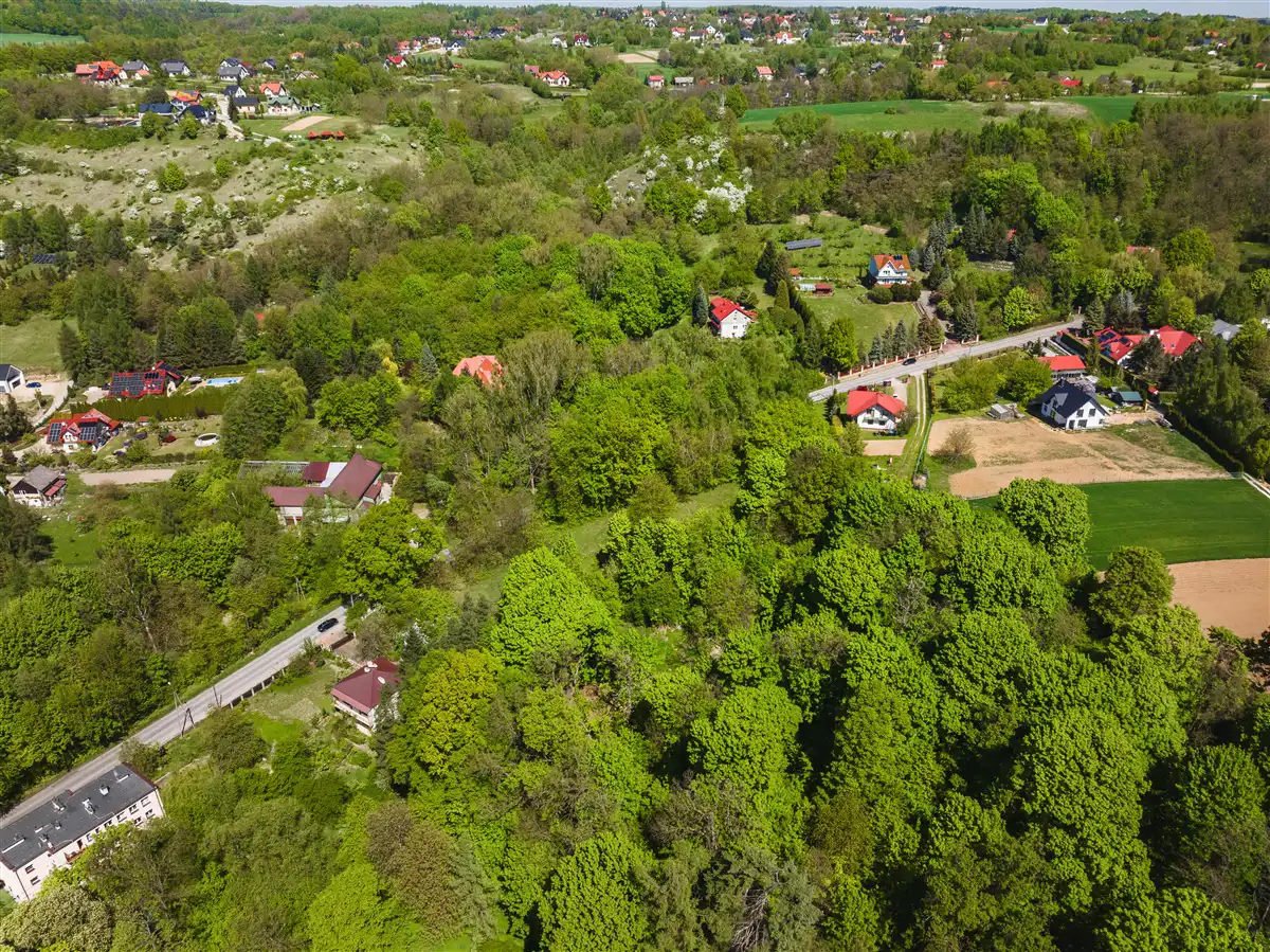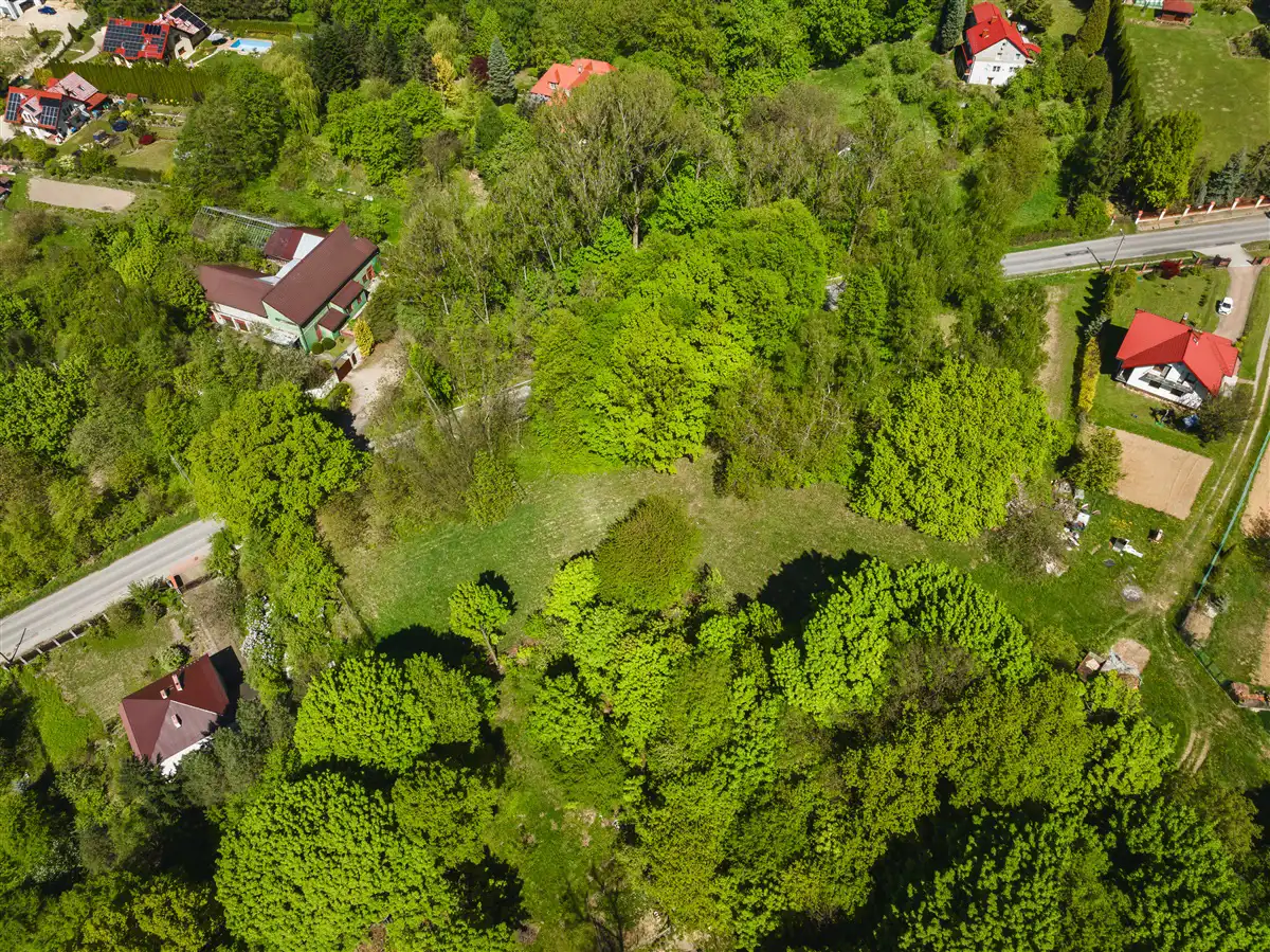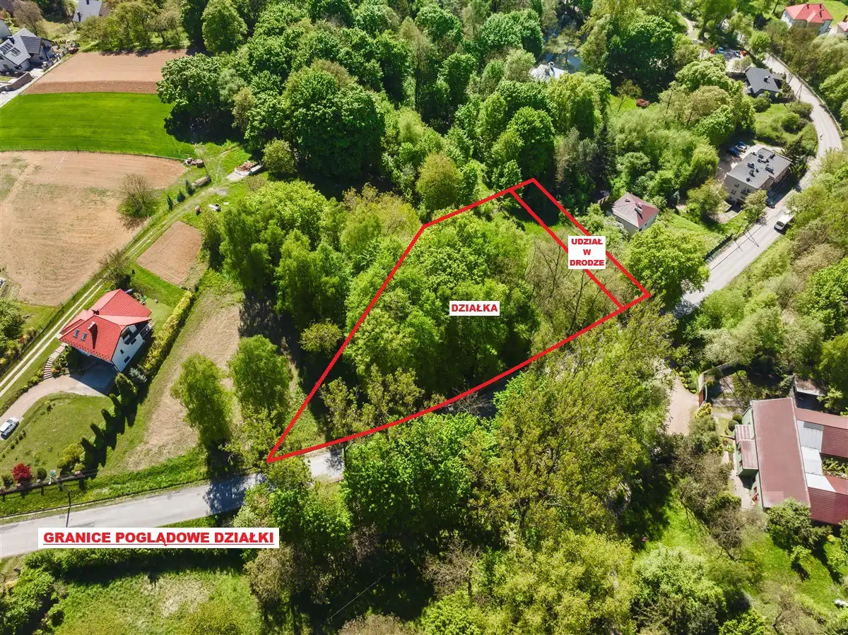 Do sprzedaży widokowa działka w całości budowlana o powierzchni 2300 m2, o nieregularnym kształcie i wymiarach około 80x40 m. Działka objęta miejscowym planem zagospodarowania przestrzennego, oznaczona symbolem MN.1- teren zabudowy mieszkaniowej jednorodzinnej z usługami. Dojazd od strony południowej z osobnej działki drogowej o powierzchni 200 m2, w której sprzedawany jest udział ½ w dodatkowej kwocie 25 000,00 zł. Zakup udziału w drodze dojazdowej jest obligatoryjny. Działka od strony zachodniej po całej szerokości graniczny z drogą gminną. Prąd na działce. Gaz, woda oraz kanalizacja w bliskiej okolicy. Działka jest pochylona w kierunku południowo-wschodnim.