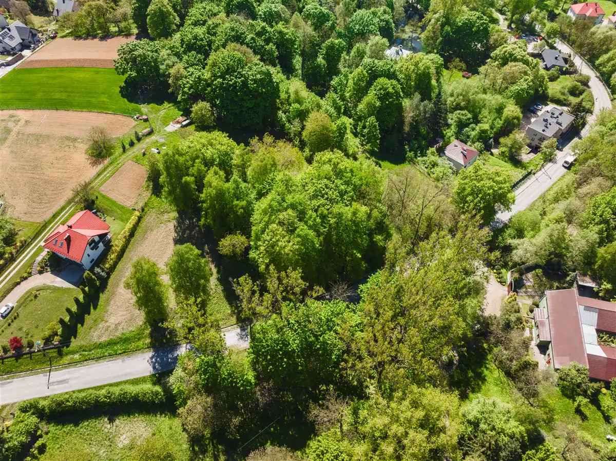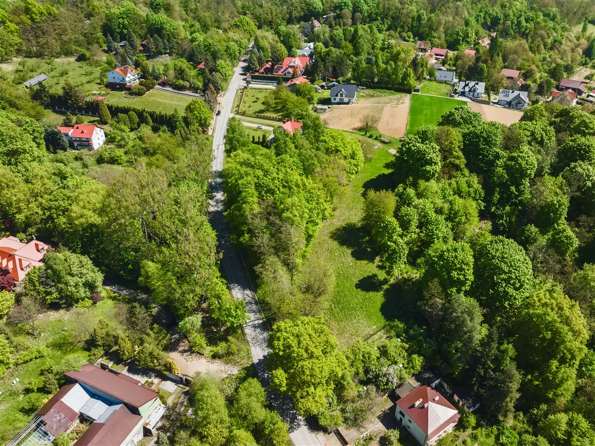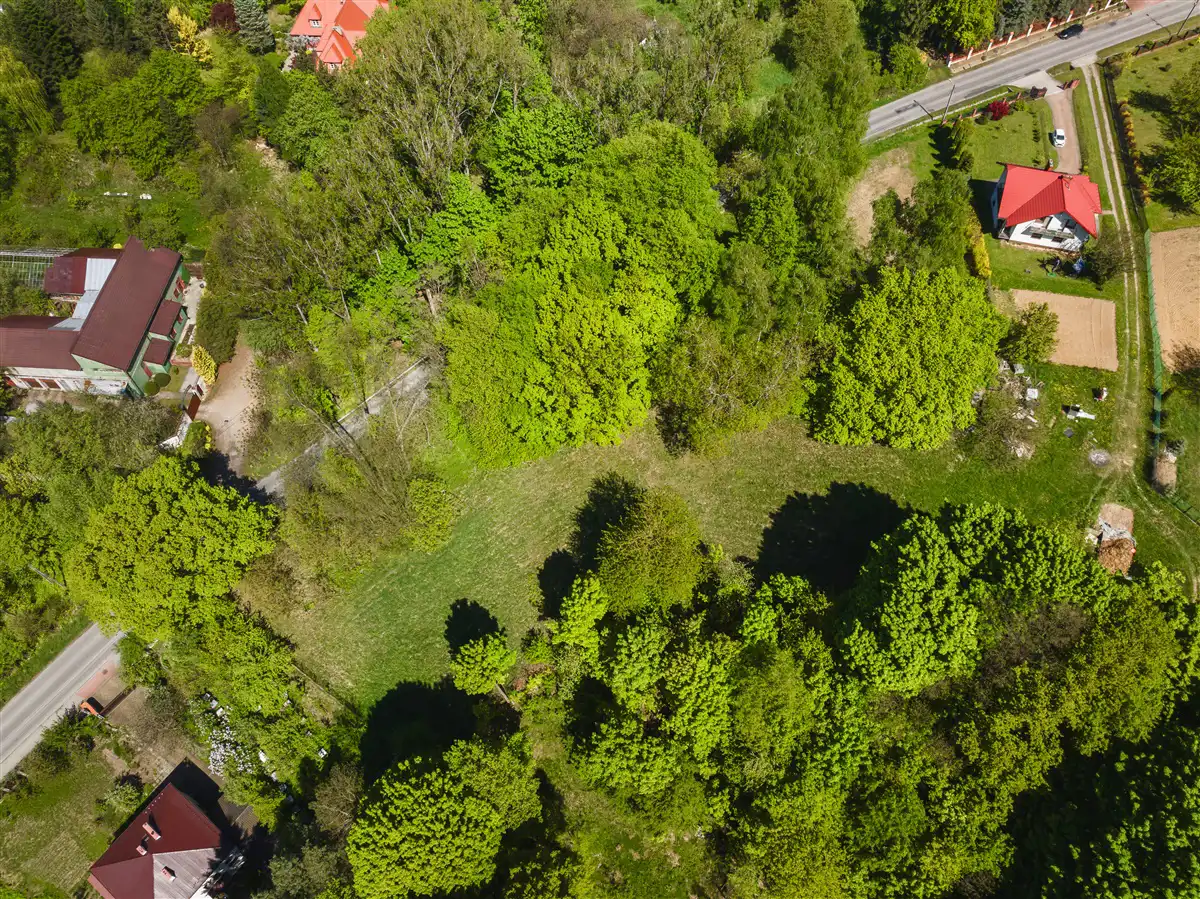 Do sprzedaży widokowa działka w całości budowlana o powierzchni 2300 m2, o nieregularnym kształcie i wymiarach około 80x40 m. Działka objęta miejscowym planem zagospodarowania przestrzennego, oznaczona symbolem MN.1- teren zabudowy mieszkaniowej jednorodzinnej z usługami. Dojazd od strony południowej z osobnej działki drogowej o powierzchni 200 m2, w której sprzedawany jest udział ½ w dodatkowej kwocie 25 000,00 zł. Zakup udziału w drodze dojazdowej jest obligatoryjny. Działka od strony zachodniej po całej szerokości graniczny z drogą gminną. Prąd na działce. Gaz, woda oraz kanalizacja w bliskiej okolicy. Działka jest pochylona w kierunku południowo-wschodnim.
