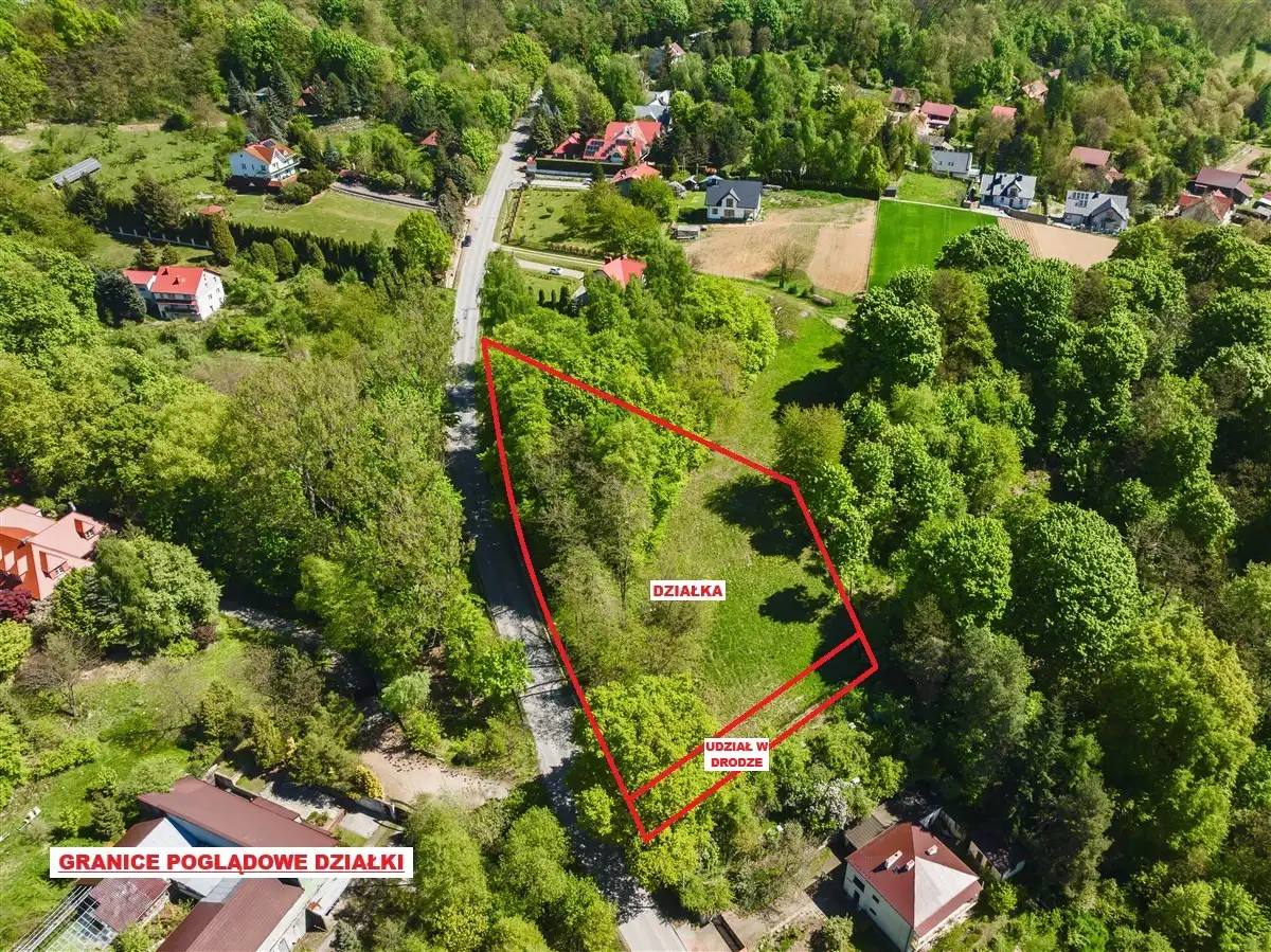 Do sprzedaży widokowa działka w całości budowlana o powierzchni 2300 m2, o nieregularnym kształcie i wymiarach około 80x40 m. Działka objęta miejscowym planem zagospodarowania przestrzennego, oznaczona symbolem MN.1- teren zabudowy mieszkaniowej jednorodzinnej z usługami. Dojazd od strony południowej z osobnej działki drogowej o powierzchni 200 m2, w której sprzedawany jest udział ½ w dodatkowej kwocie 25 000,00 zł. Zakup udziału w drodze dojazdowej jest obligatoryjny. Działka od strony zachodniej po całej szerokości graniczny z drogą gminną. Prąd na działce. Gaz, woda oraz kanalizacja w bliskiej okolicy. Działka jest pochylona w kierunku południowo-wschodnim.
