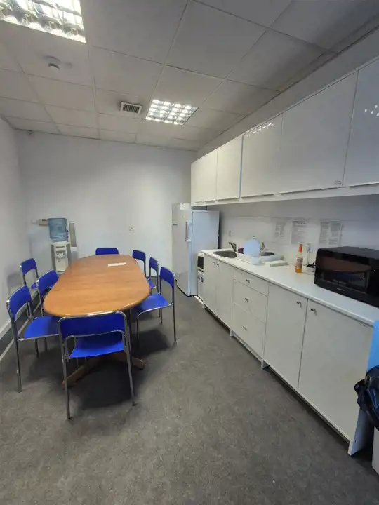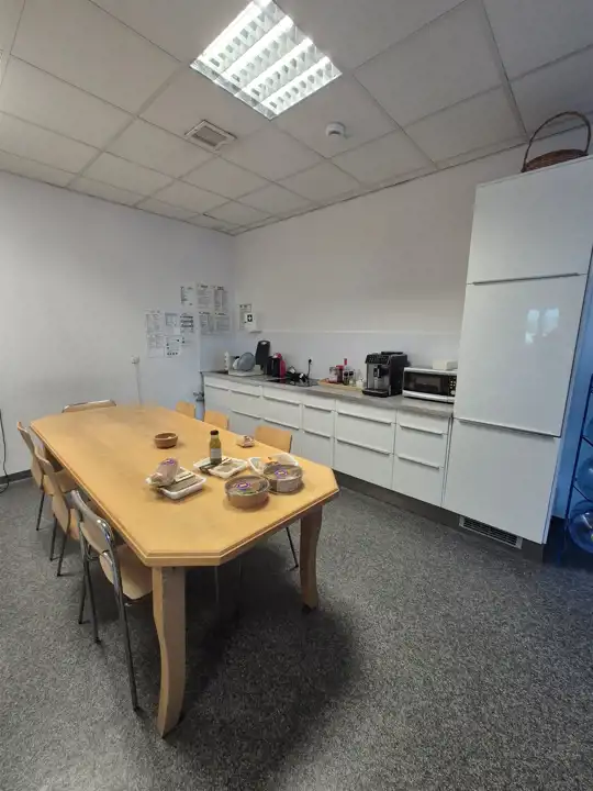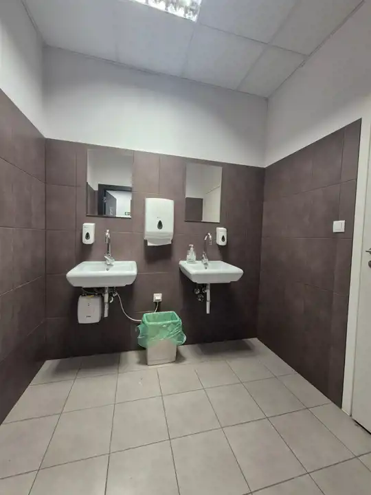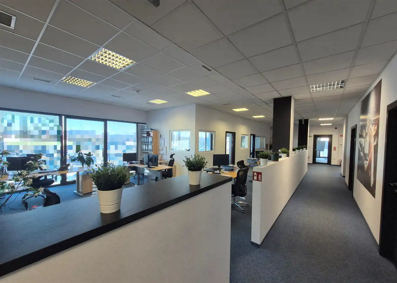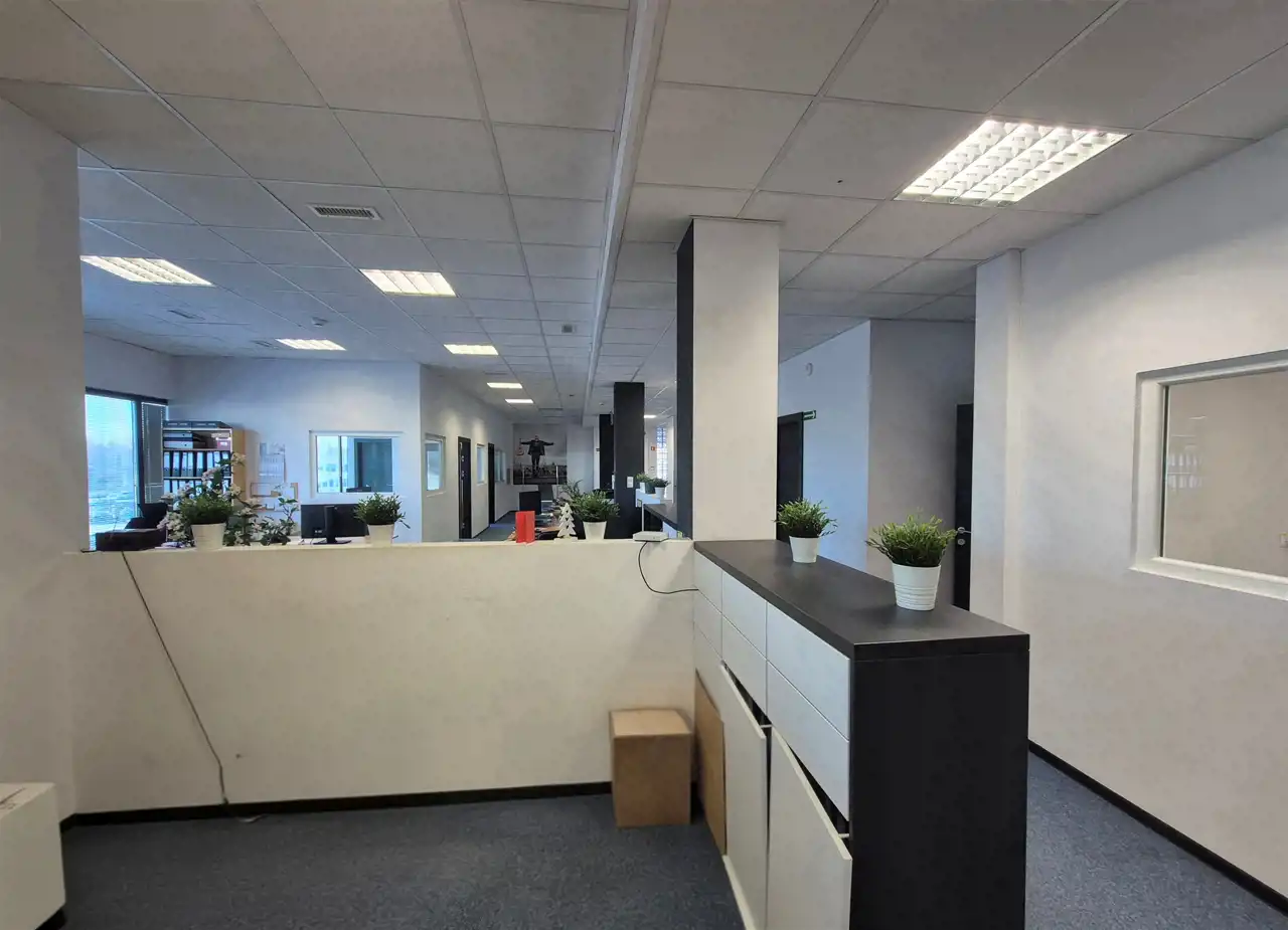 - część biurowo- socjalna o łącznej powierzchni ok. 394m2 ( pomieszczenia biurowe, zaplecze socjalne, szatnie, toalety męskie oraz damskie- wszystkie pomieszczenia są klimatyzowane).