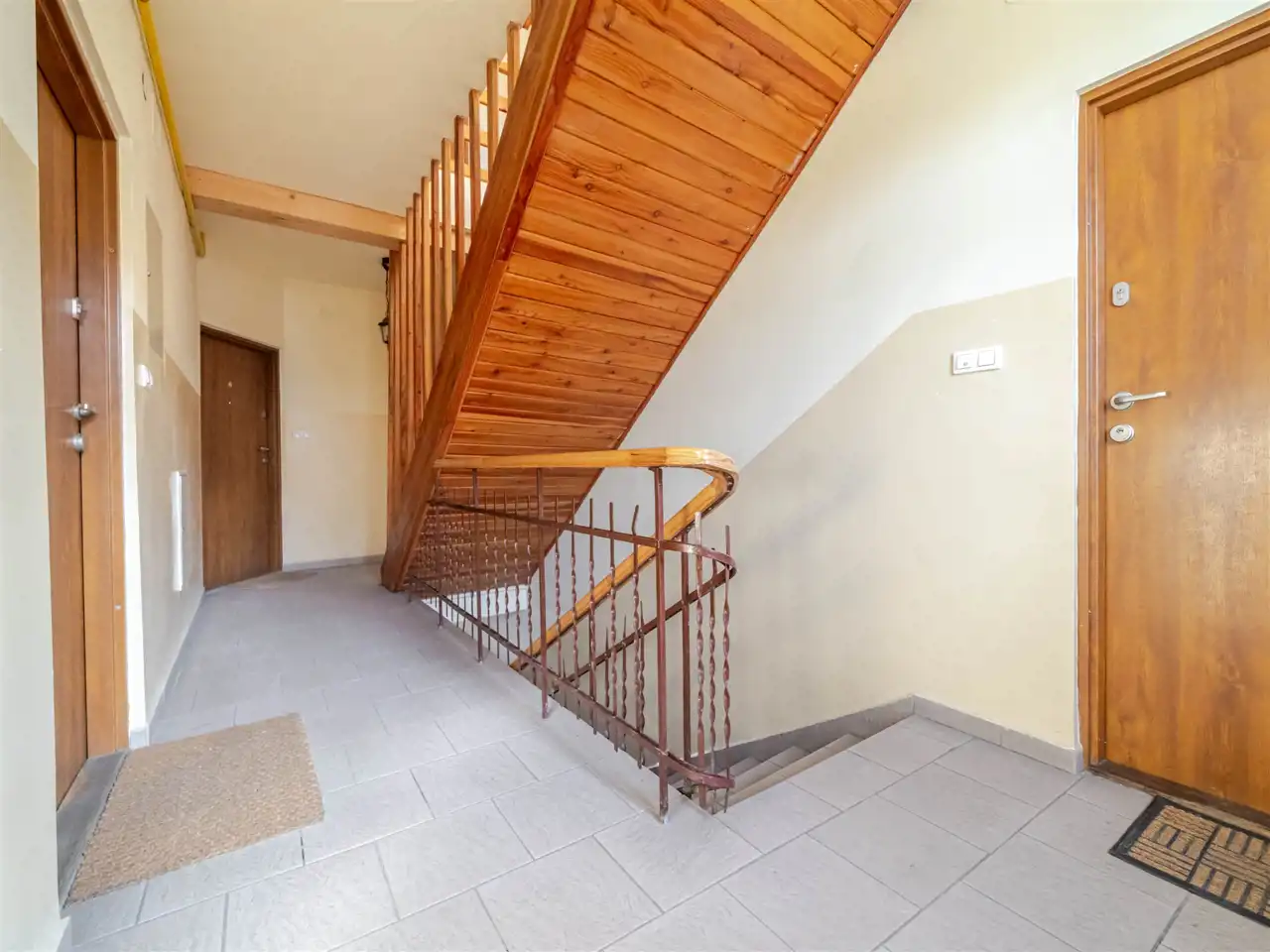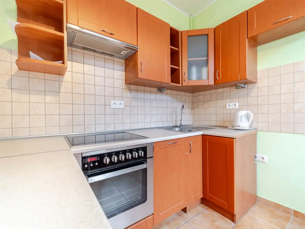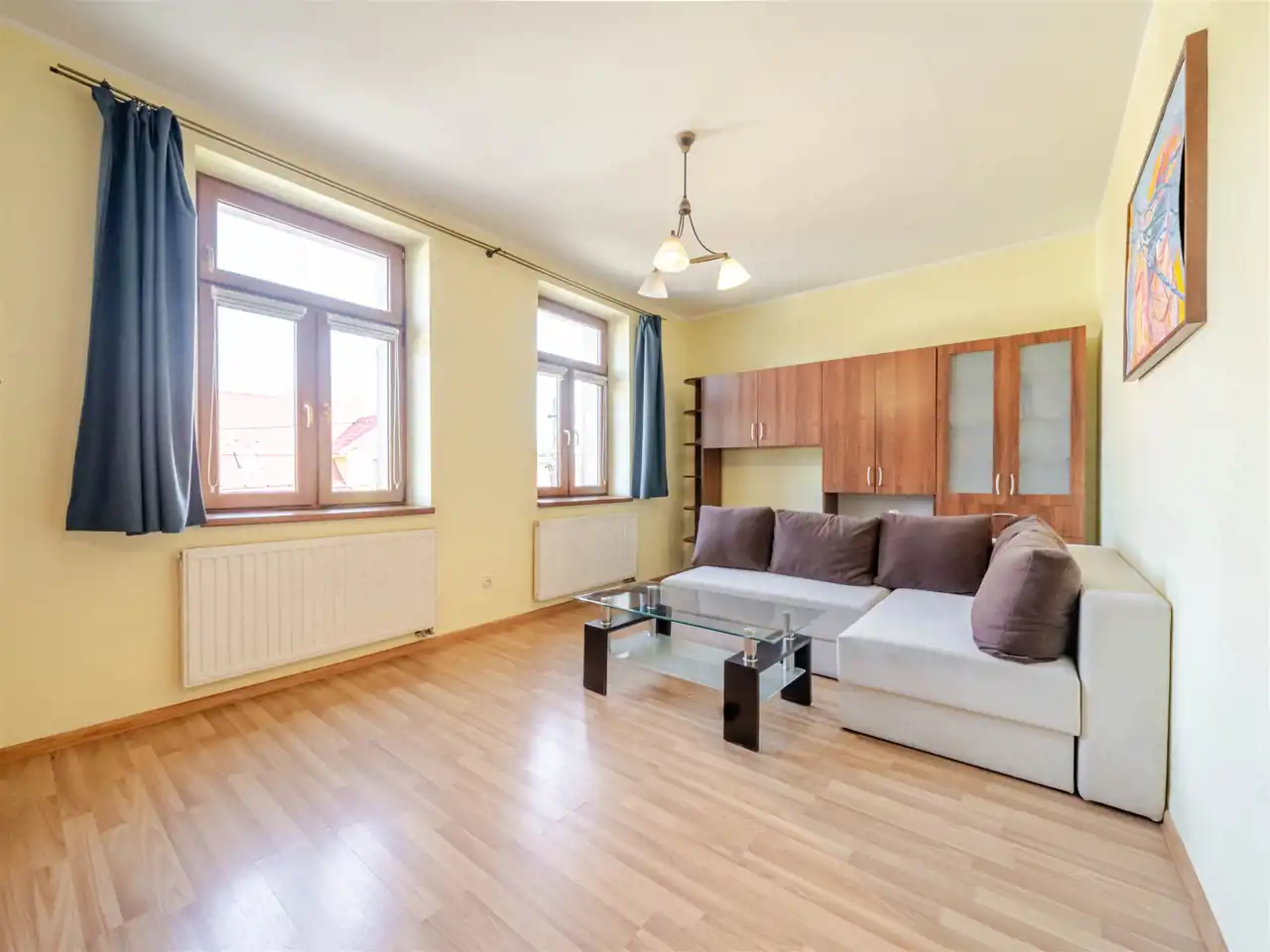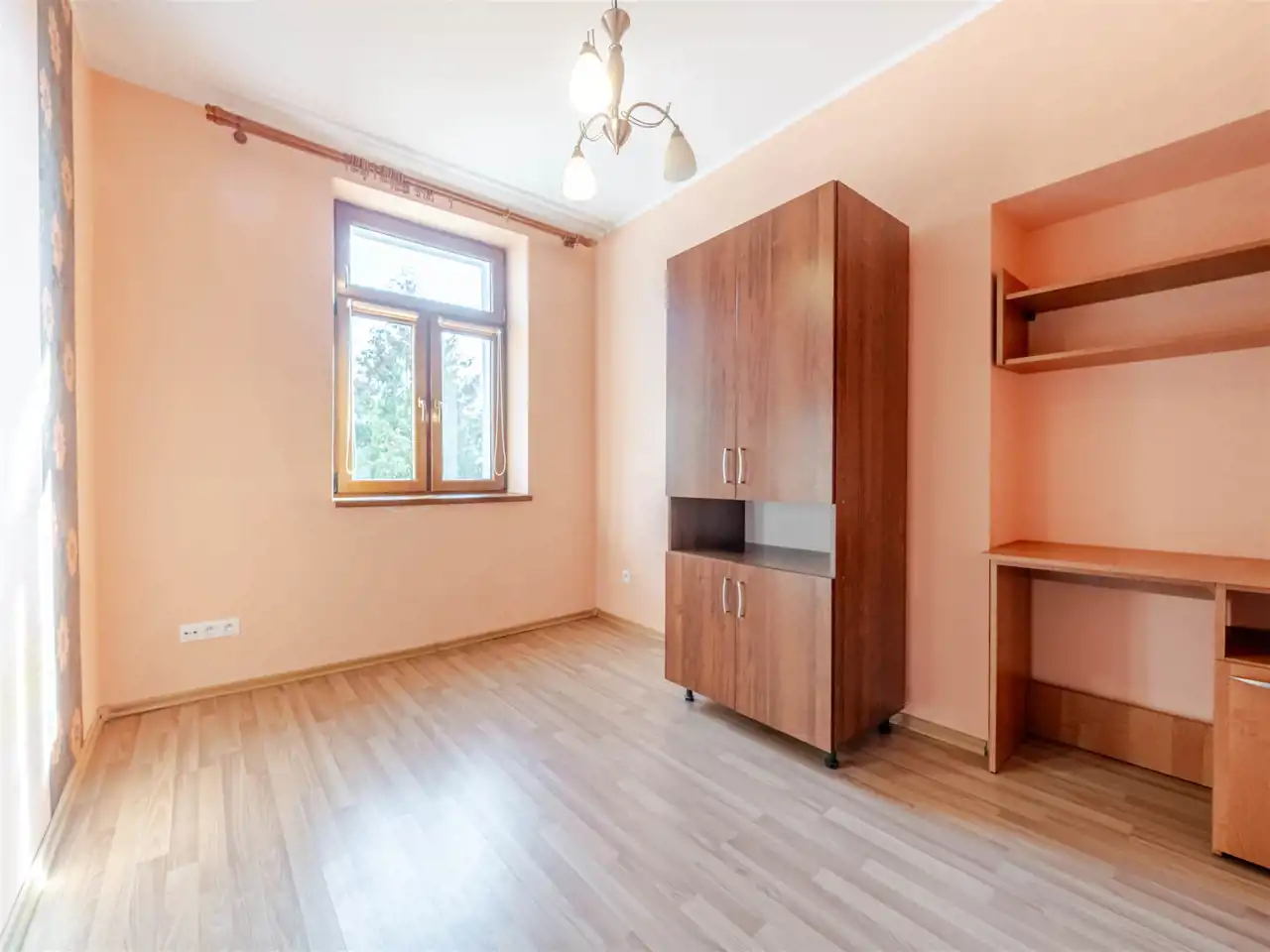 Mieszanie położone jest na pierwszym piętrze, ma trzystronną ekspozycję okien. Jest ładne i gotowe do zamieszkania. Ma metraż 42,74 m2 i składa się z pokoju dziennego (ok.16 m2), sypialni (ok.10 m2), kuchni i łazienki.