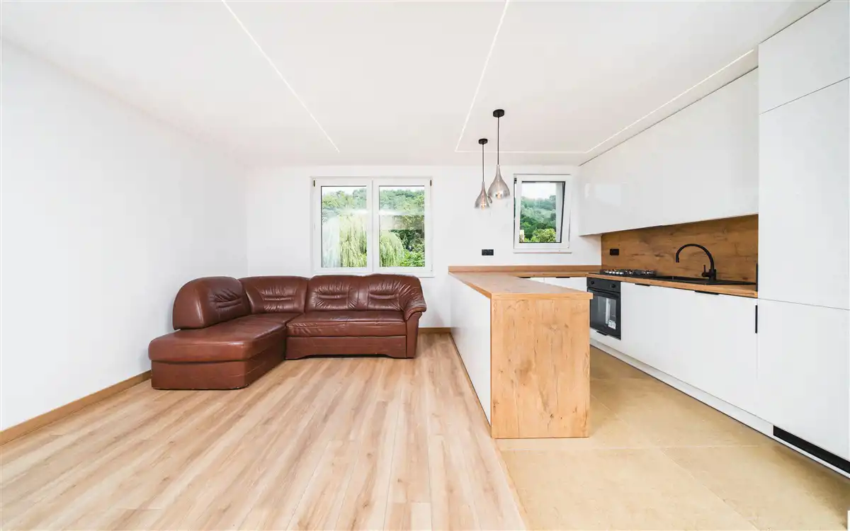 - przestronny salon z umeblowanym i wyposażonym aneksem kuchennym (ok. 22,5 m2)