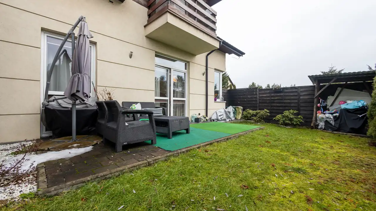 Mieszkanie usytuowane jest na zamkniętym osiedlu na parterze budynku jednorodzinnego do, którego przynależy ogród ok 60m2 i składa się z :