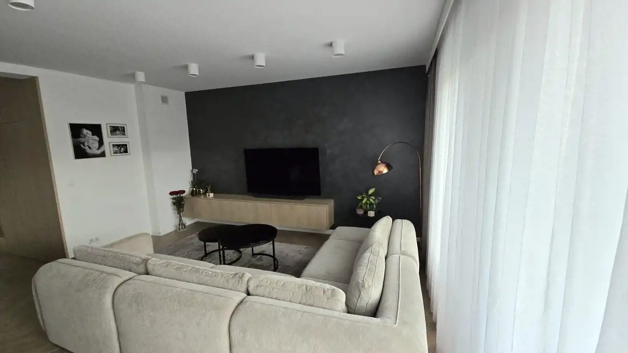 Lokal został wykończony w najwyższym standardzie – jasne, przestronne wnętrza, nowoczesna kolorystyka, przemyślany układ i minimalistyczna aranżacja sprawiają, że nieruchomość emanuje elegancją i harmonią. Większość mebli jest wykonywana na wymiar, co gwarantuje indywidualny charakter wnętrz i idealne wykorzystanie przestrzeni.