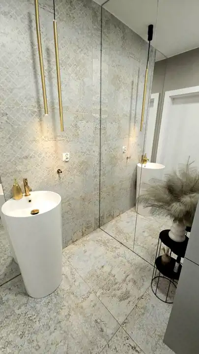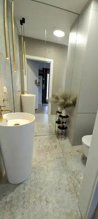 - przestronna łazienka – 6,76 m², wykończona luksusową armaturą i wysokiej klasy ceramiką,