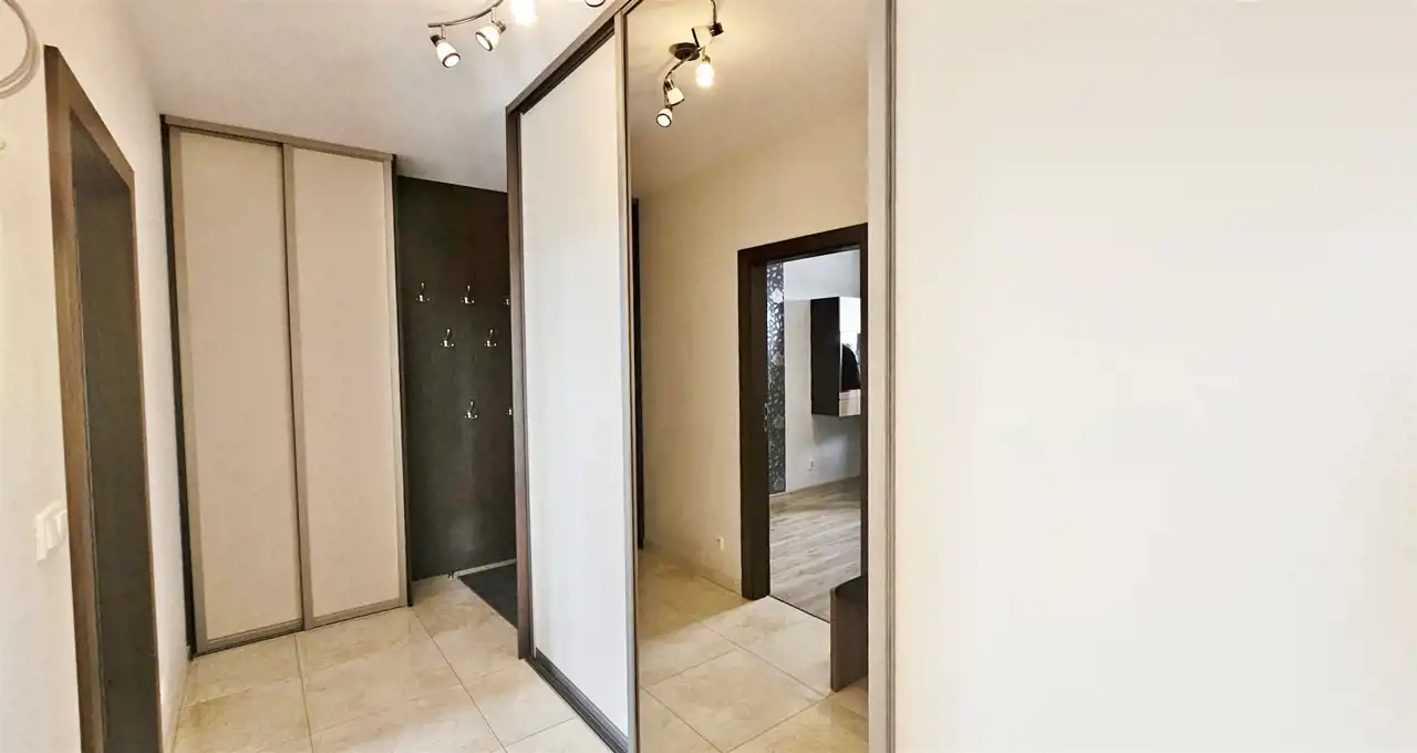 - Przedpokój z dwoma pojemnymi szafami w zabudowie,