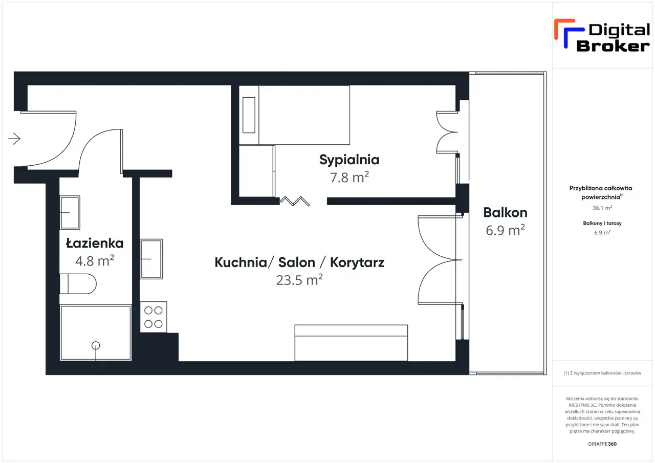 - Charakterystyka mieszkania 36.12 m2, 2 pokoje