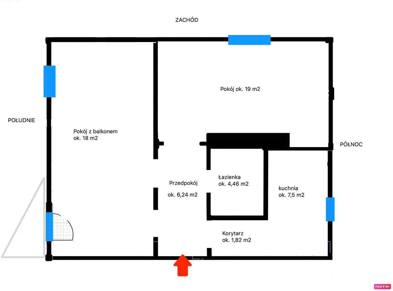 - Przedpokój o pow. ok. 6,24 m2
