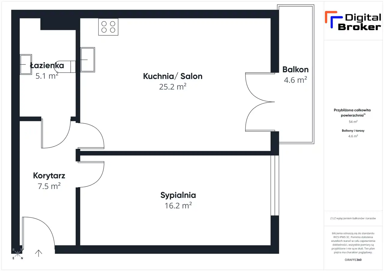 - Charakterystyka mieszkania 53.47 m2, 2 pokoje