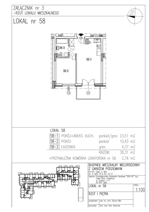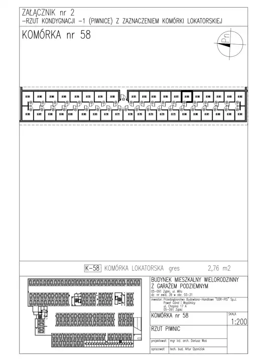 Do mieszkania przynależy komórka lokatorska o powierzchni 2,71 m², usytuowana na kondygnacji ‑1.