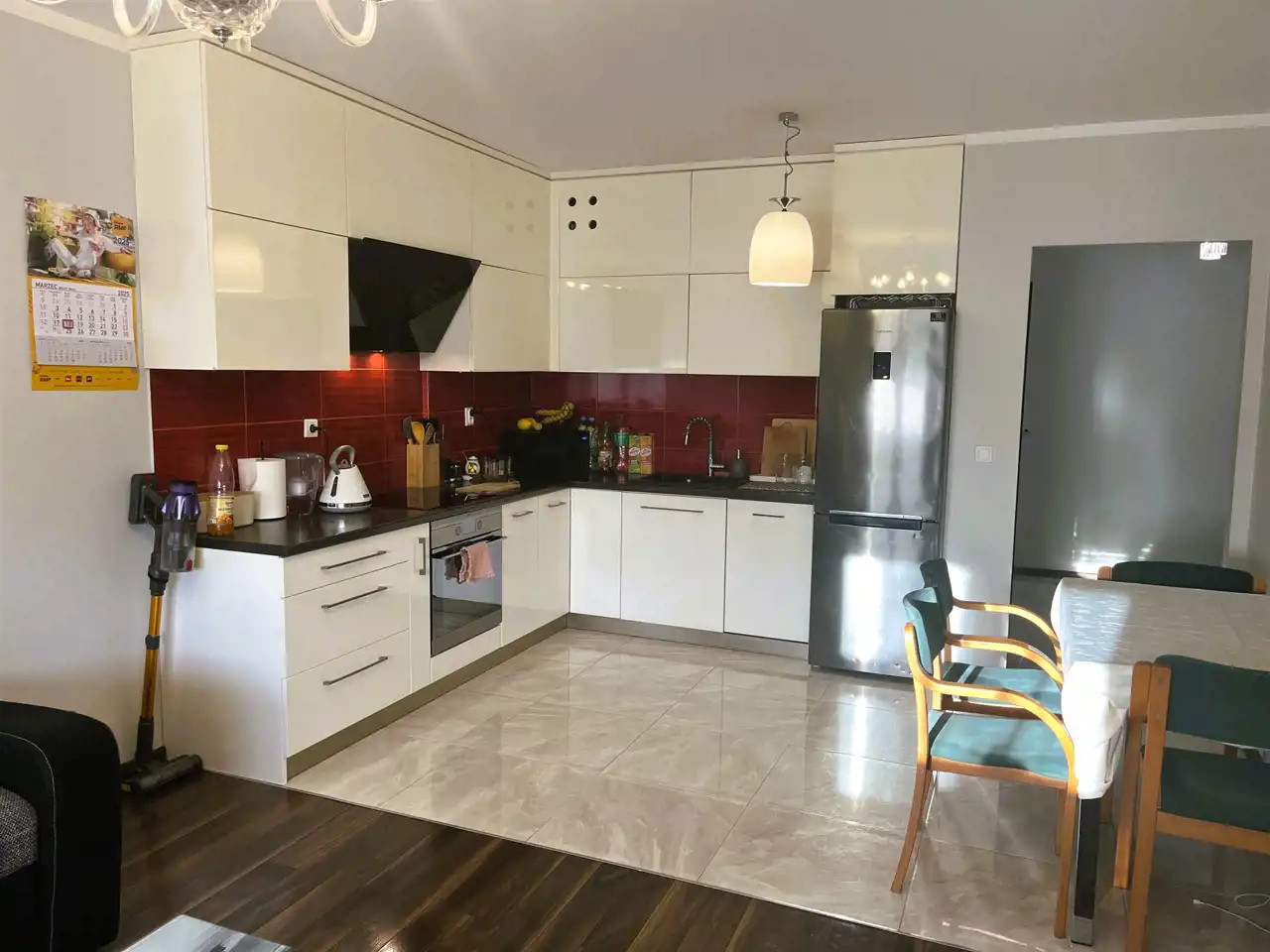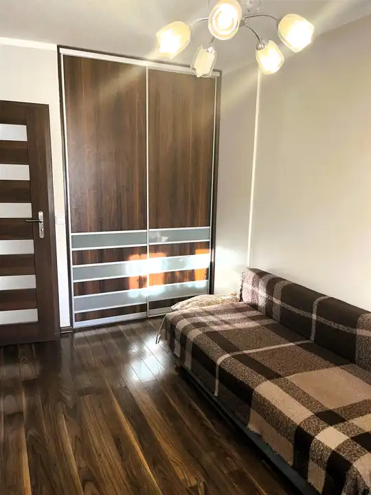 W przedpokoju i sypialnia są dwie duże szafy. Kuchnia wyposażona w kompletny sprzęt AGD.