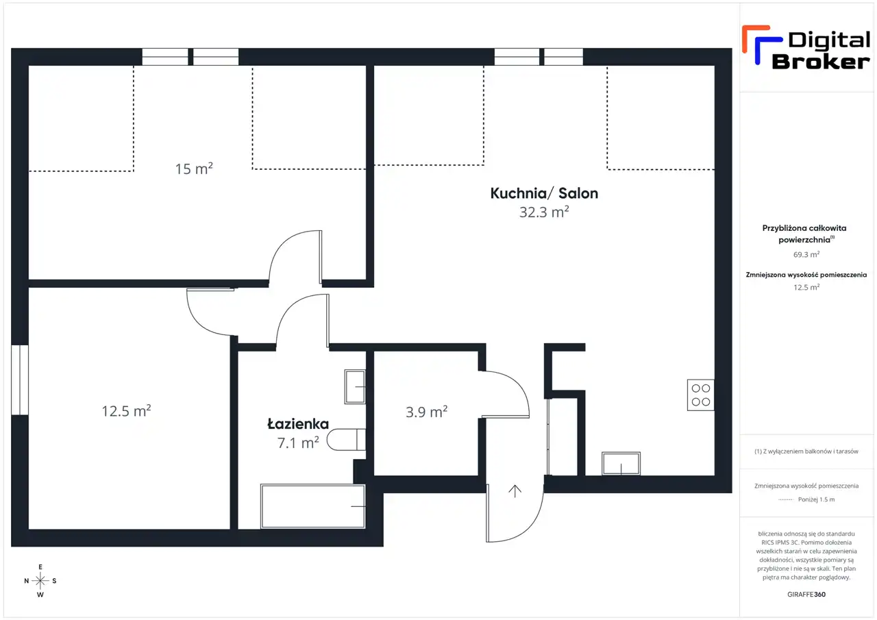 - Charakterystyka mieszkania 69.27 m2, 3 pokoje