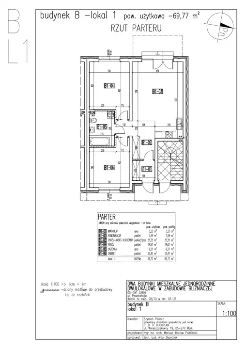 - Charakterystyka mieszkania 69.77 m2, 3 pokoje