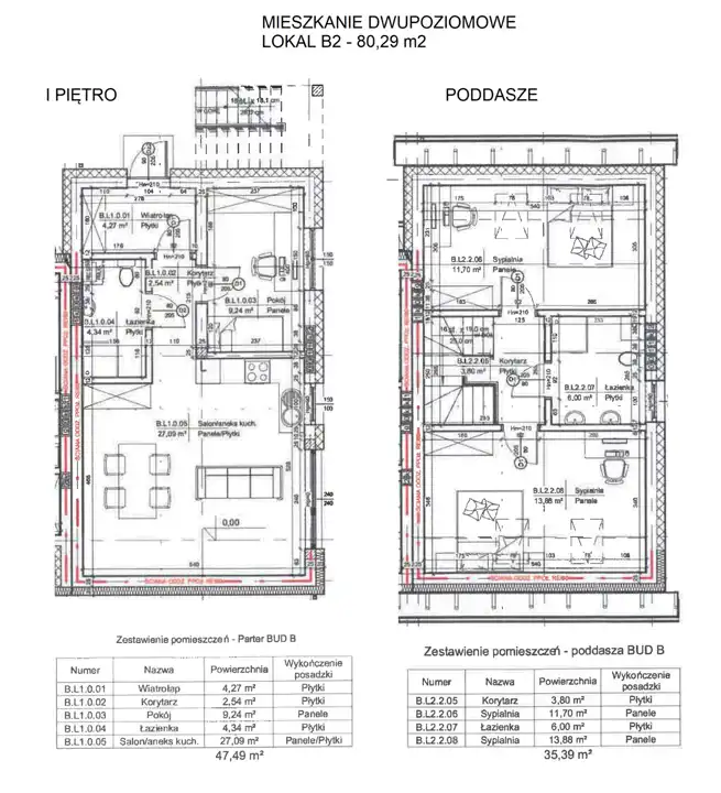 Mieszkanie położone na piętrze i poddaszu użytkowym - Lokal B2 o powierzchni 80,29 m2.