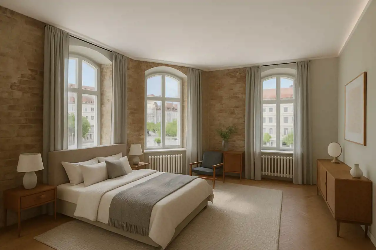 Bardzo blisko sklepy, bank, szkoła, przedszkole, apteka, fryzjer, biblioteka, kościół itp. Zainspirowani tym pięknym wnętrzem pokusiliśmy się o własne projekty wykończenia tego mieszkania które przedstawiamy na zdjęciach. Chcieliśmy pokazać jak wiele możliwości i styli można użyć w tym wnętrzu.