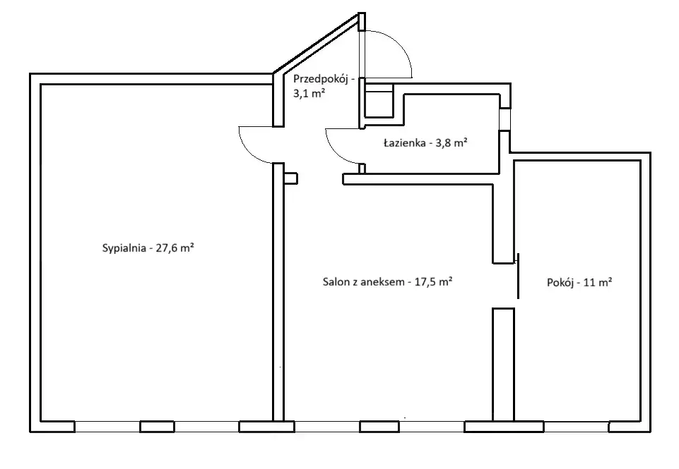 Salon z aneksem kuchennym, dwie sypialnie, łazienka z prysznicem oraz przedpokój. Kuchnia przygotowana pod montaż mebli według własnej aranżacji.