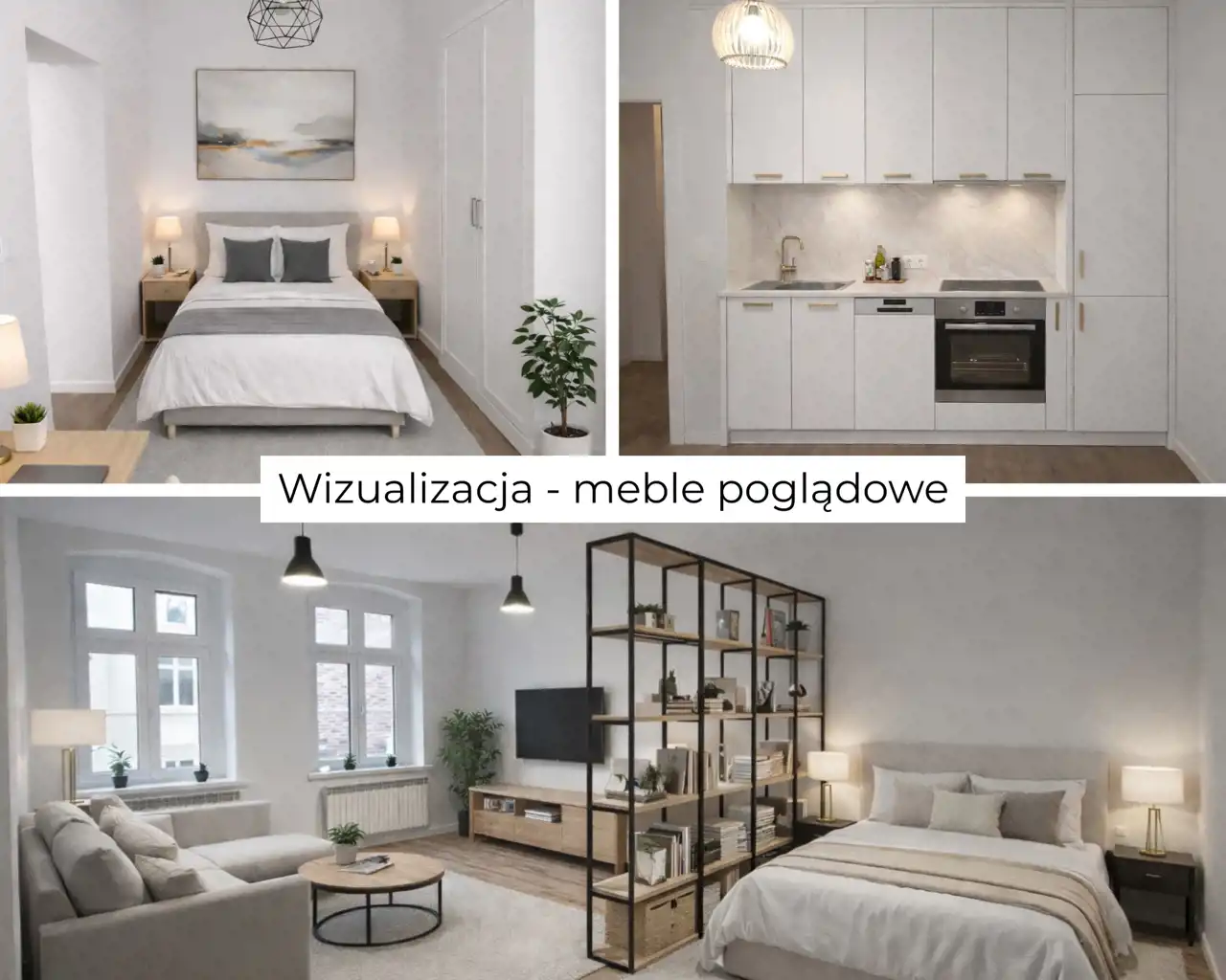 W ogłoszeniu zaprezentowano wizualizacje przykładowej aranżacji wnętrz (meble poglądowe – nie są częścią oferty).