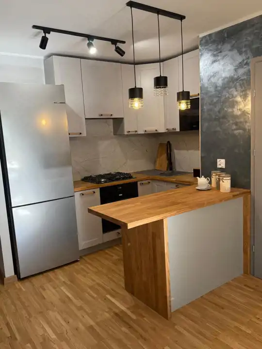 W cenie mieszkania pozostaje pełne umeblowanie, a kuchnia jest wyposażona w zmywarkę, lodówkę, płytę gazową i kuchenkę mikrofalową.