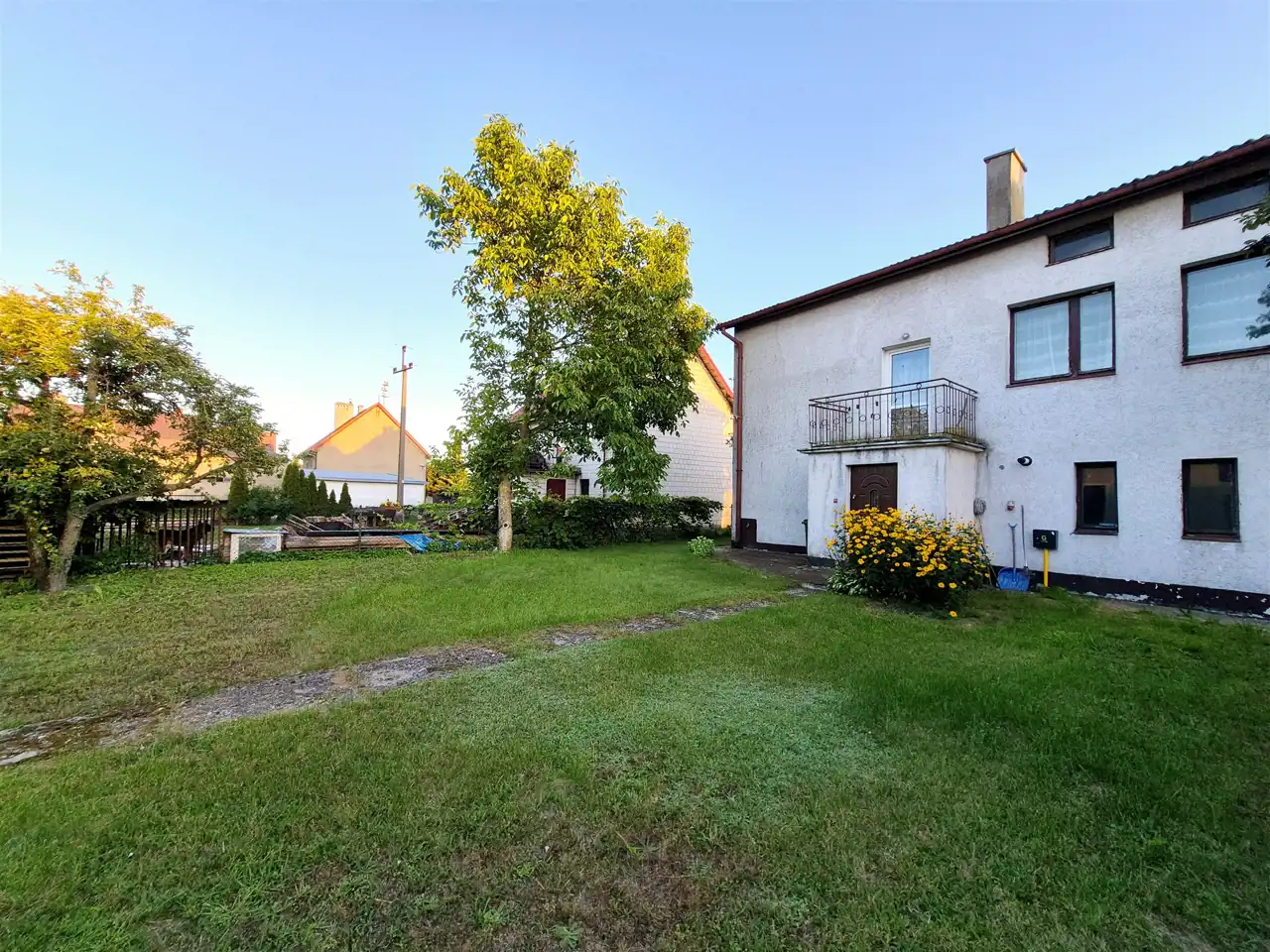 Nieruchomość położona jest na ogrodzonej i zadbanej działce o powierzchni 648 m², obsadzonej roślinnością ozdobną i drzewami.