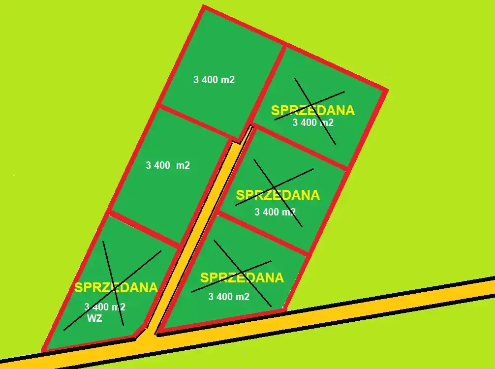 Pomiędzy działkami wytyczona jest droga wewnętrzna, zapewniająca dojazd do poszczególnych działek.