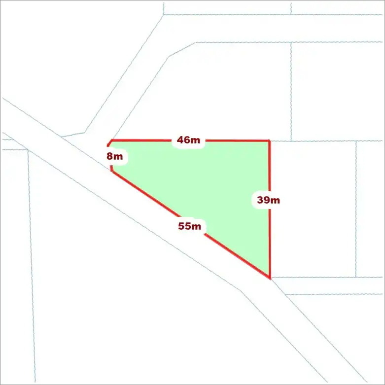 Działka ma nieregularny kształt, zbliżony do trójkąta.