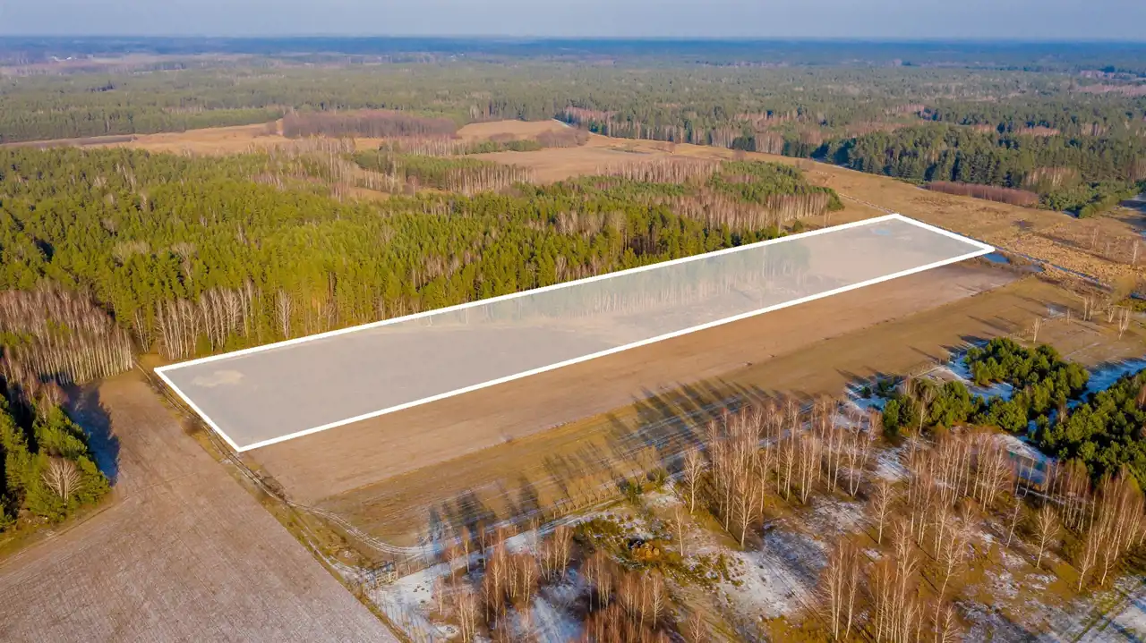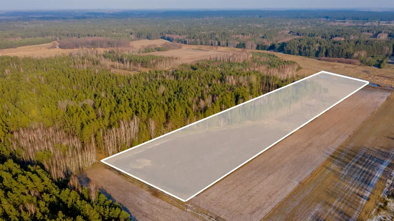 Prostokątny teren o powierzchni 3,8ha - posiada wymiary 85mx470m