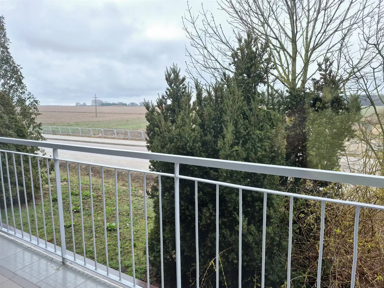 balkonu od strony południowej, zapewniającego mnóstwo naturalnego światła i przytulną przestrzeń do odpoczynku,
