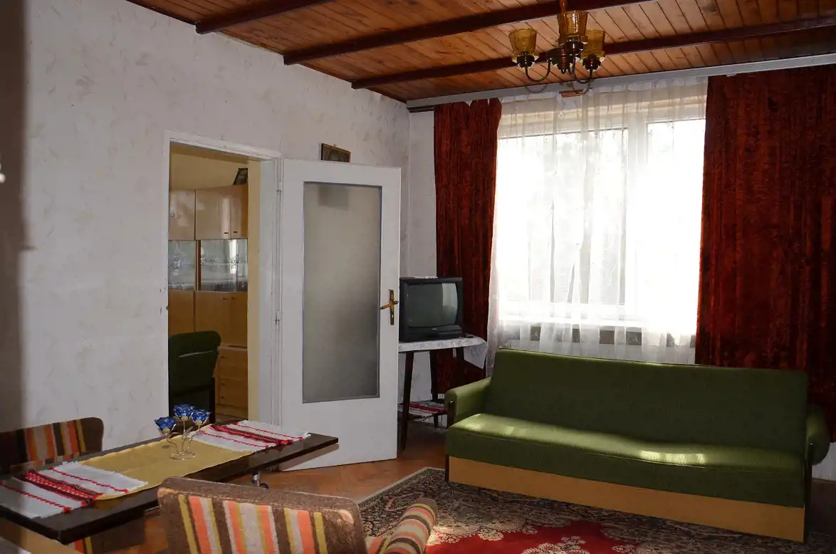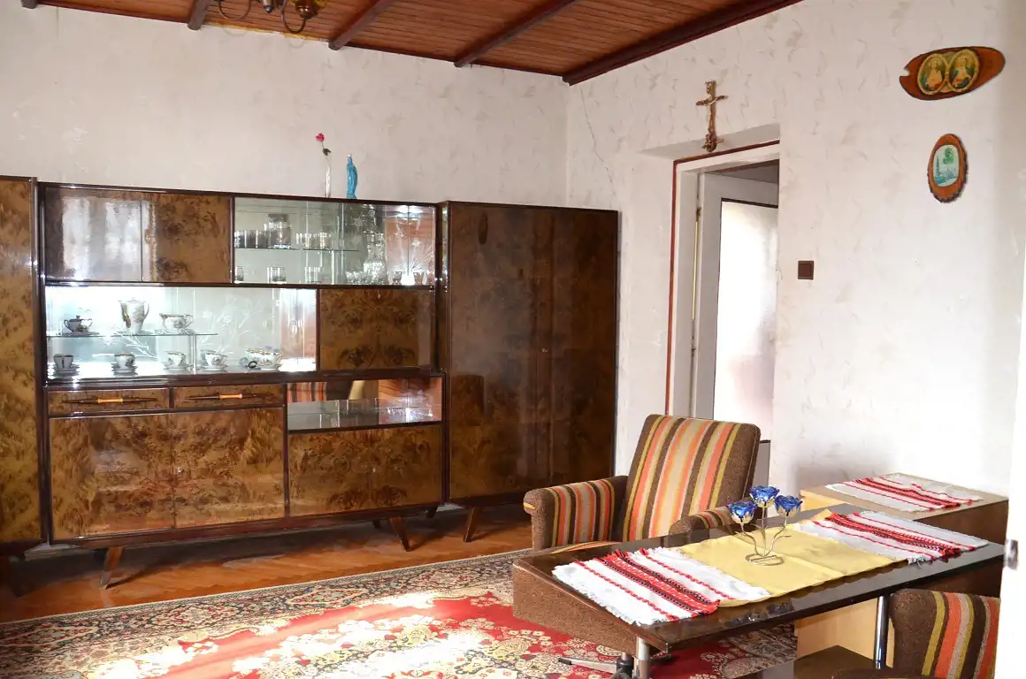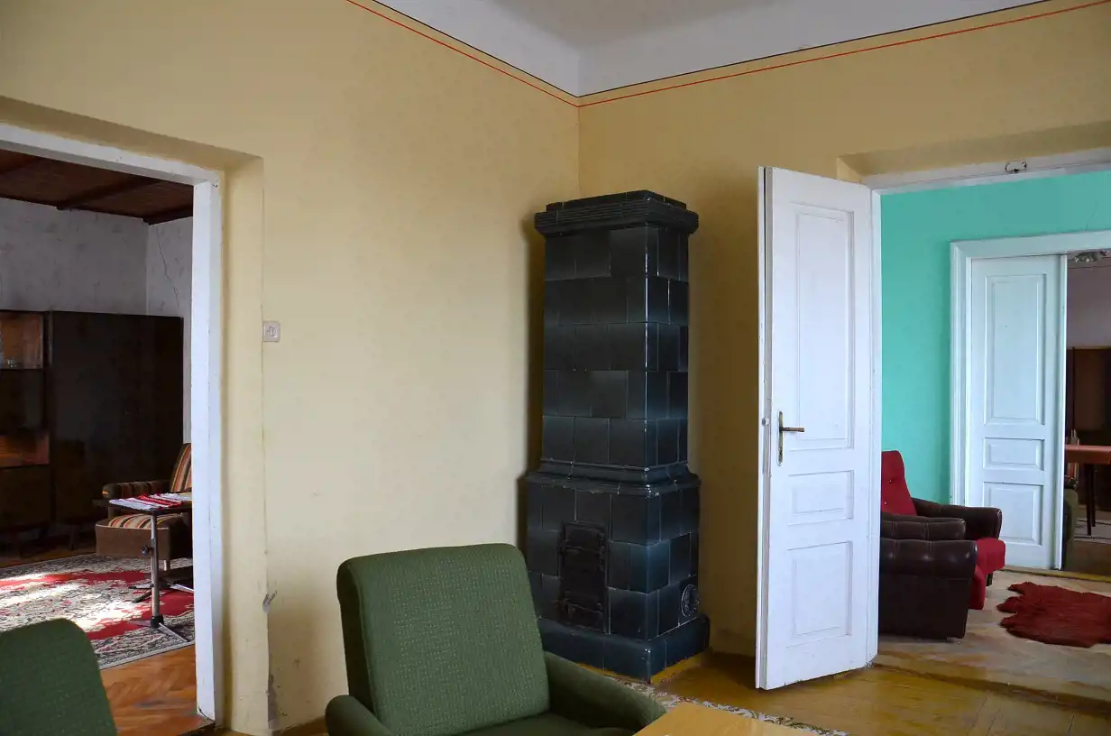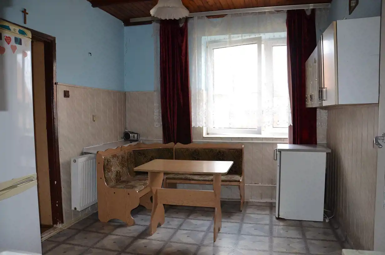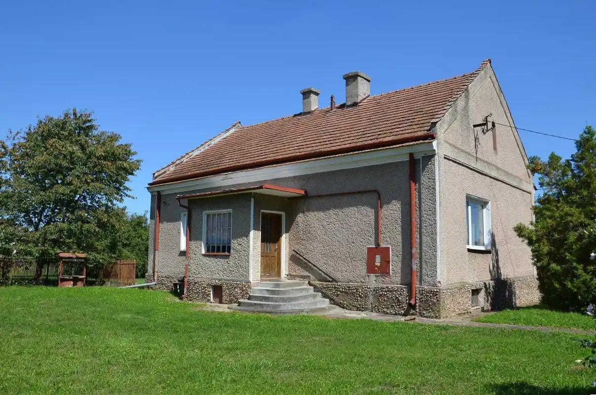 Dom z lat 50-tych, murowany, częściowo podpiwniczony, przeznaczony do remontu. Materiał budowlany: cegła wypalana ręcznie. Ściany dwudziałowe. Dach kryty dachówką. Okna PCV wymienione w 2017r. Wysokość pomieszczeń 3,17m. Na podłogach deski, wykładzina PCV, parkiet.