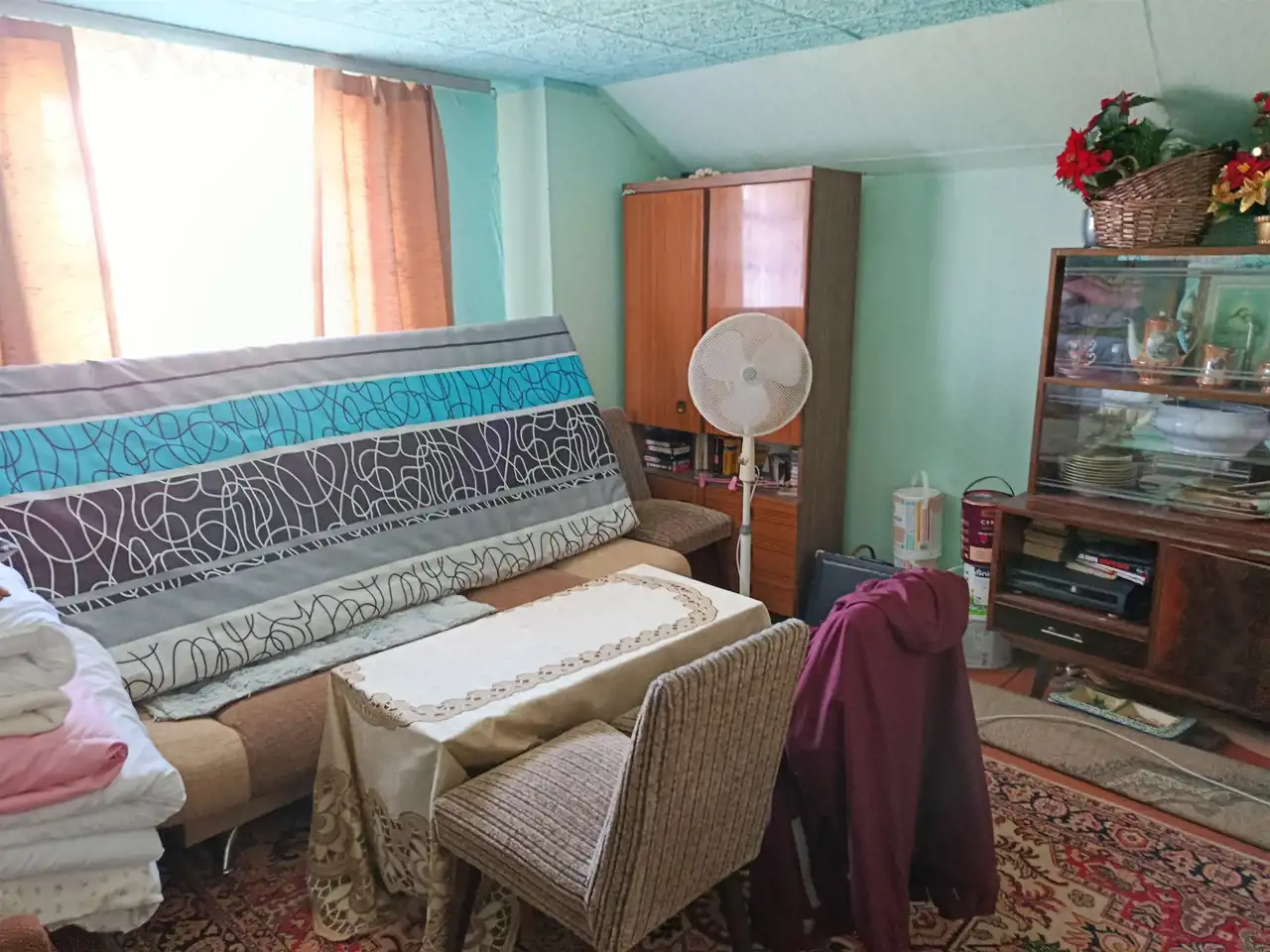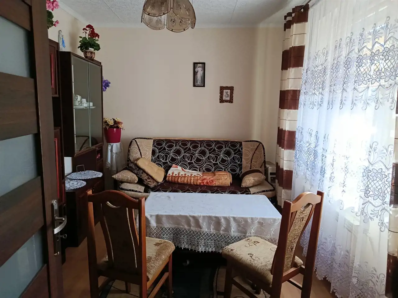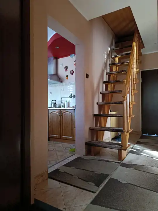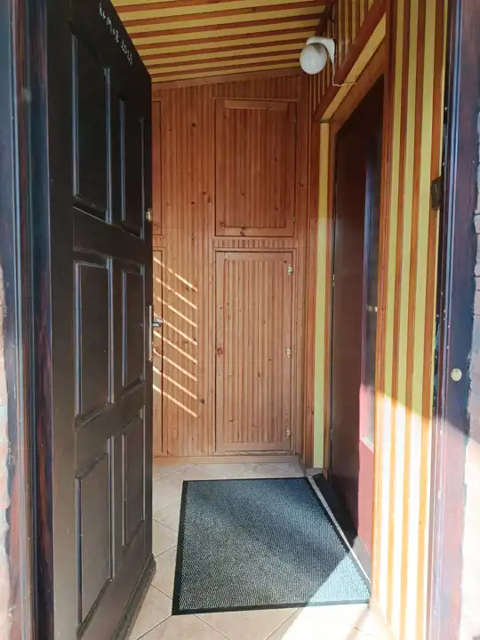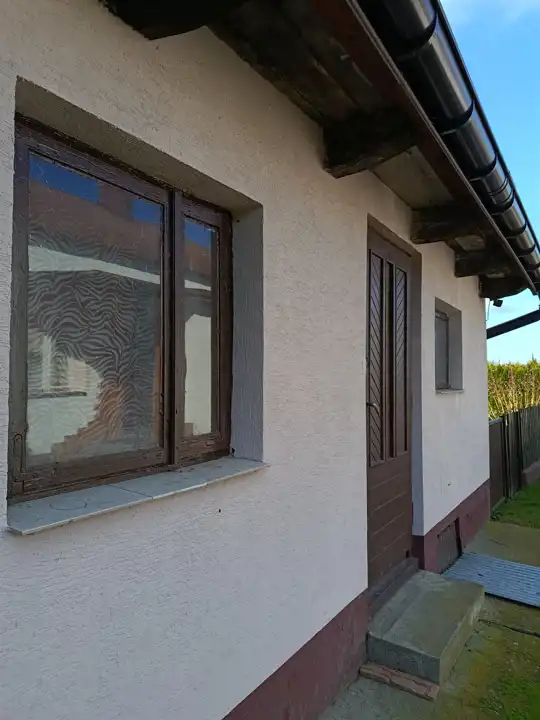- Stolarka okienna: – 4 okna plastikowe (ok. 4 lata) oraz 3 okna drewniane nowe.