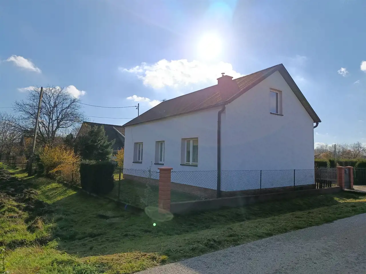 - Działka w całości ogrodzona, od frontu metalowe przęsła na podmurówce, pozostała część działki siatką na podmurówce.