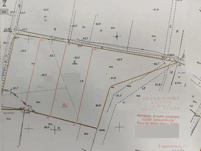 Działka w kształcie prostokąta regularna podzielona 2.491mkw,