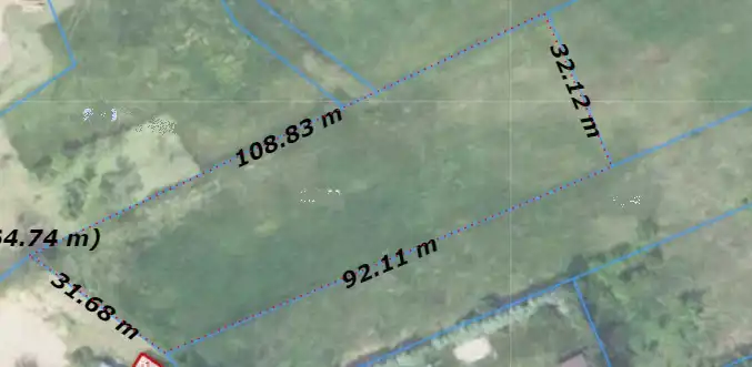 Wymiary działki od frontu~ 32m, długość 109,35m