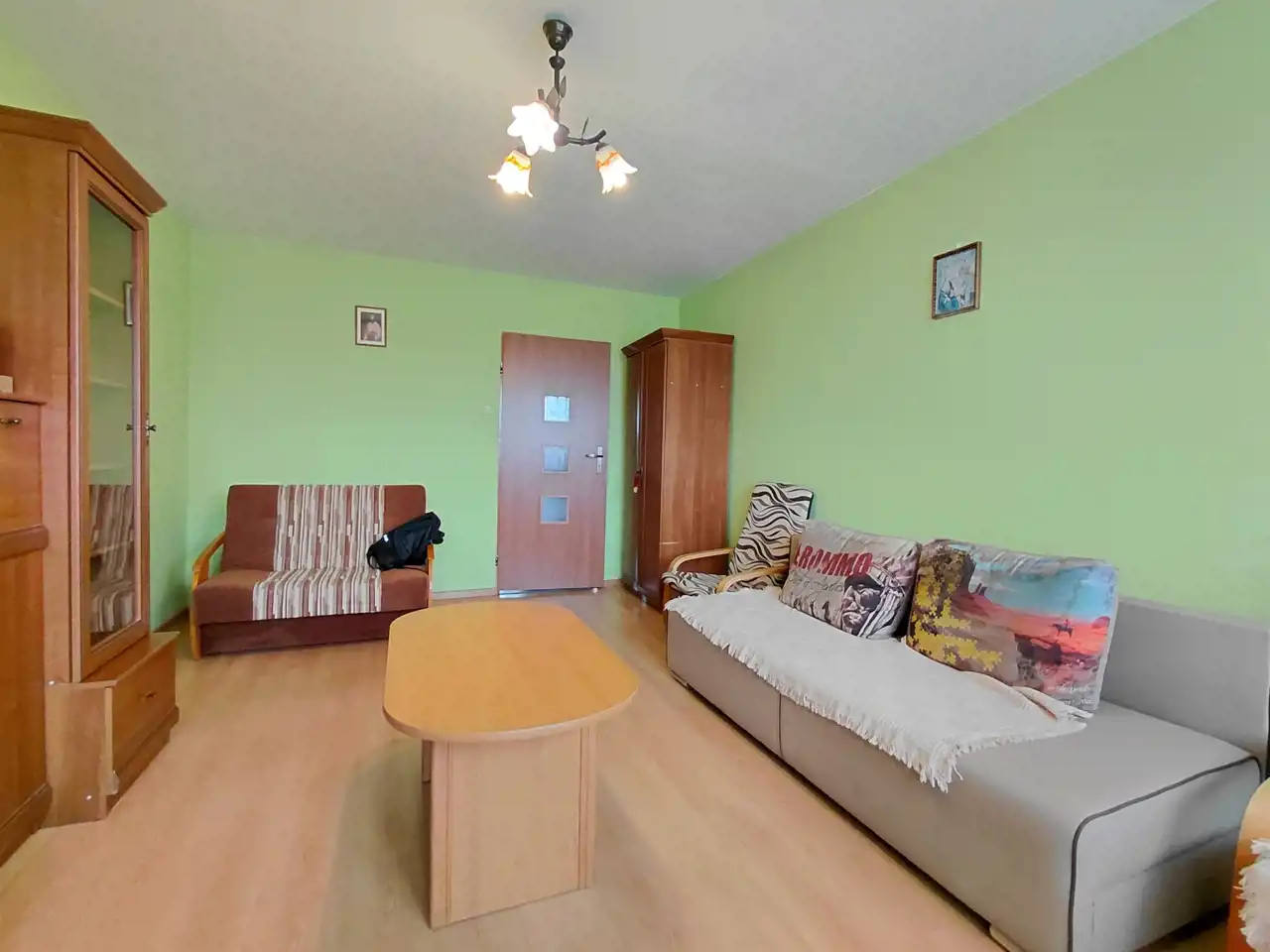 Mieszkanie – wymaga jedynie niewielkiego odświeżenia, co pozwala nowemu właścicielowi dopasować je do własnych potrzeb.