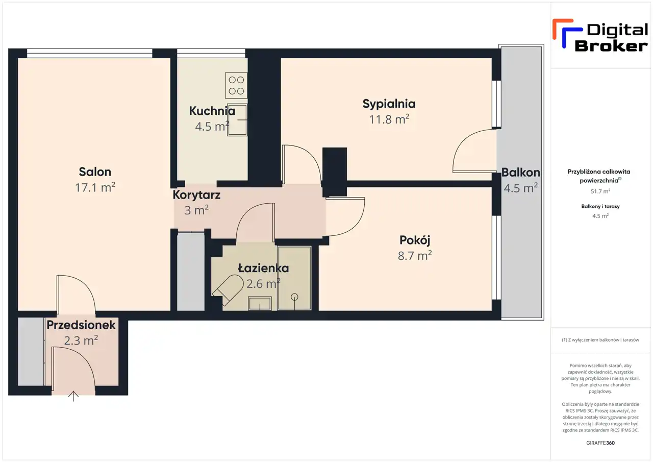 - Charakterystyka mieszkania 51 m2, 3 pokoje