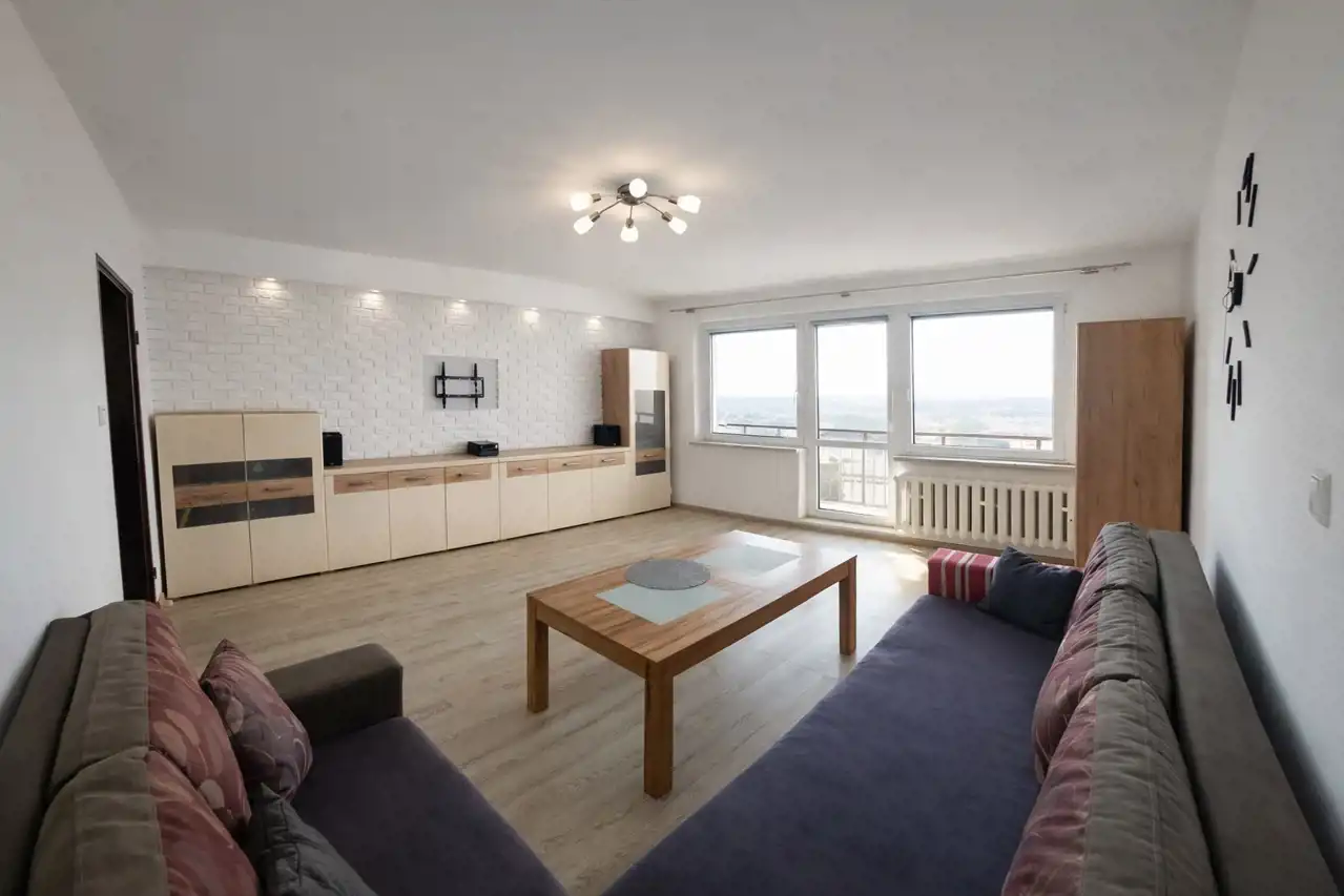 Przestronny balkon z wyjątkowym widokiem na całą aglomerację śląską oraz góry