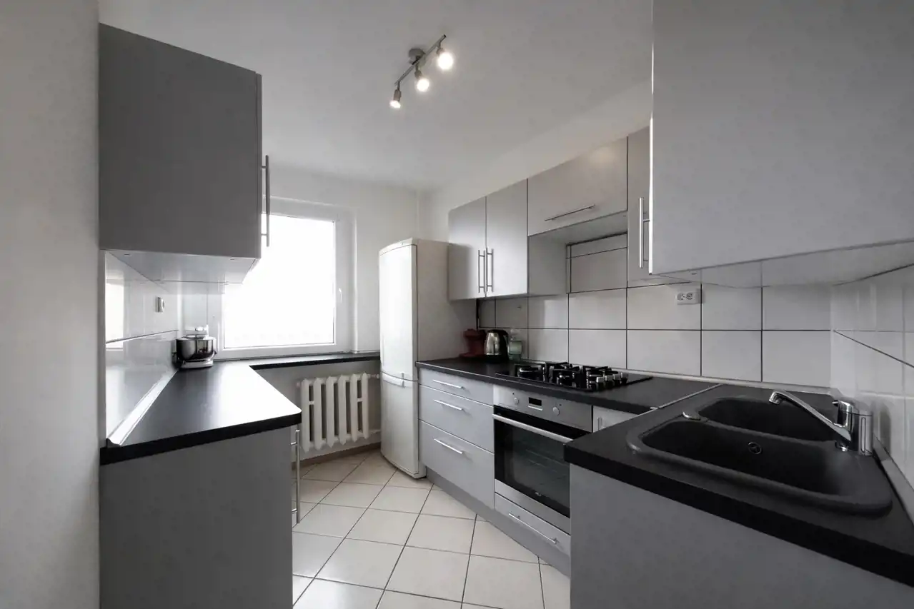 Pełne wyposażenie w cenie – meble, zabudowy szaf, pralka, lodówka, piekarnik, płyta grzewcza, kuchnia IKEA