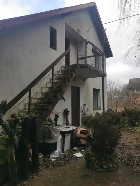 - Piętro: Kuchnia, pomieszczenie-schowek, 3 pokoje (w tym jeden z garderobą), łazienka z WC.