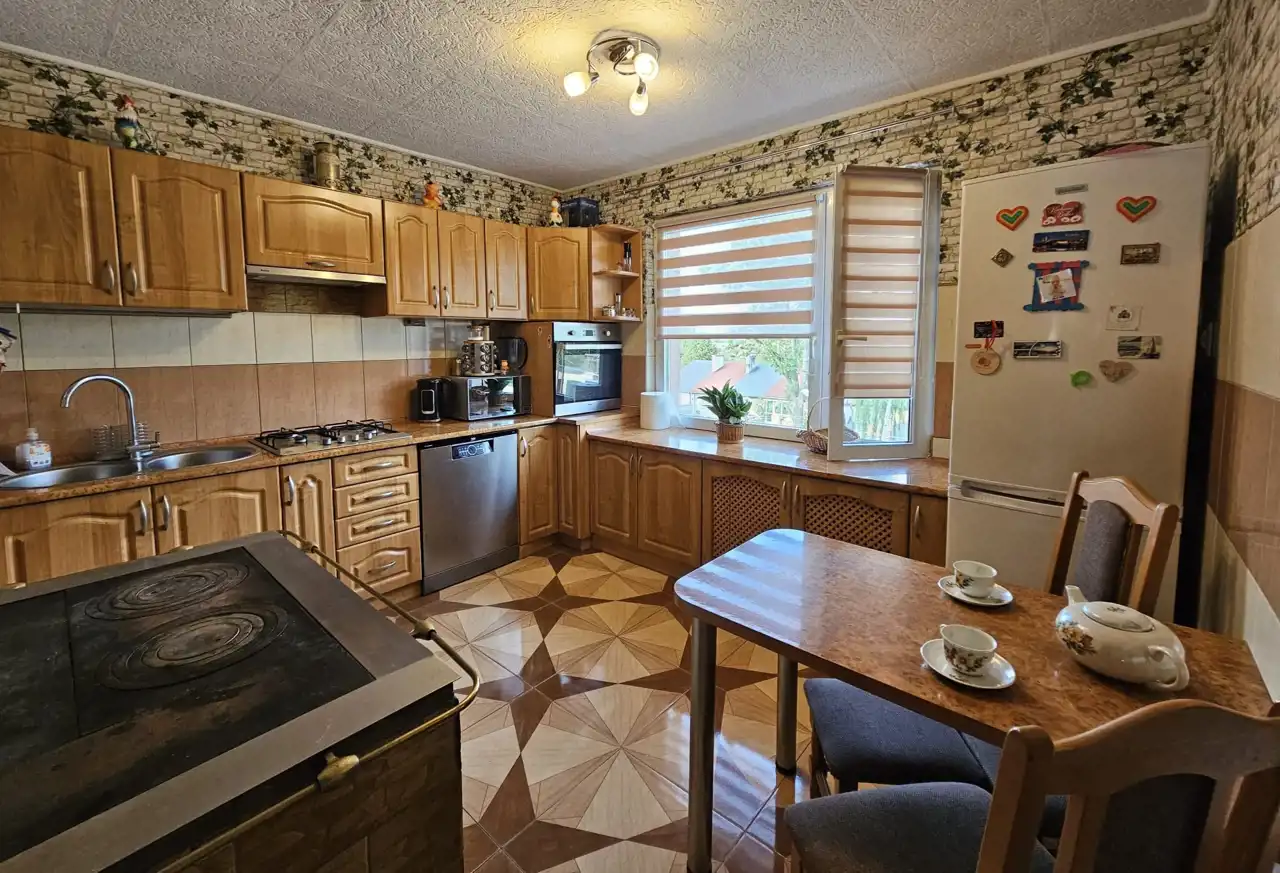 W kuchni oprócz piekarnika elektrycznego, płyty gazowej do gotowania i nowiutkiej zmywarki znajduje się piec, który pozwala wrócić do natury i przygotować posiłek "po wiejsku" na ogniu - prawdziwa atrakcja dla osób szukających życia bliżej natury.