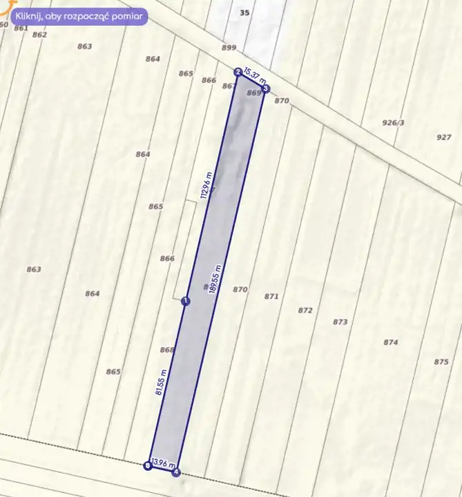 Działka płaska w kształcie prostokąta o wymiarach 16 m x 189.