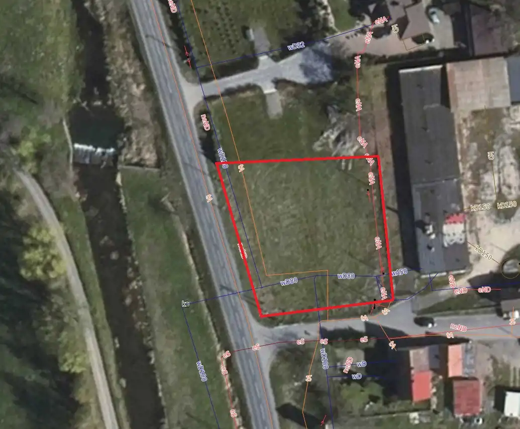 - Media Woda: na działce; Kanalizacja: brak; Prąd: na działce