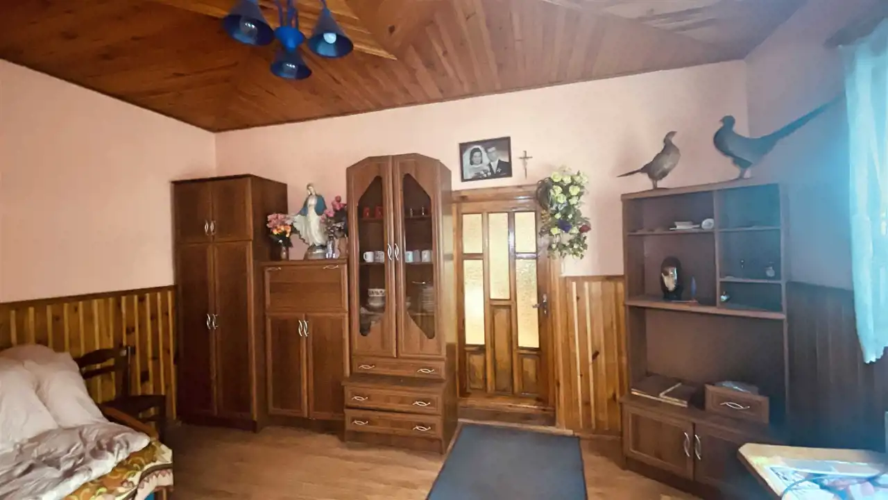 Dom mieszkalny ma powierzchnię użytkową 60 m2 i składa się z kuchni, dwóch przytulnych pokoi oraz łazienki. Obok budynku mieszkalnego znajdują się zabudowania gospodarcze, idealne do adaptacji na potrzeby nowego właściciela – mogą pełnić funkcję składów, garaży lub pomieszczeń dla zwierząt. Stan nieruchomości umożliwia przystosowanie jej do Twoich indywidualnych potrzeb i wizji.