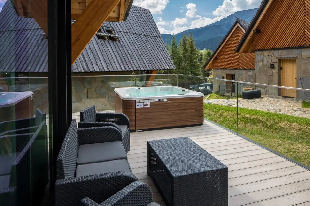 ✔ Strefa relaksu – prywatne jacuzzi z widokiem na góry