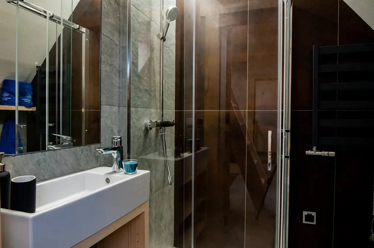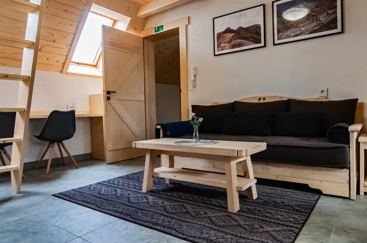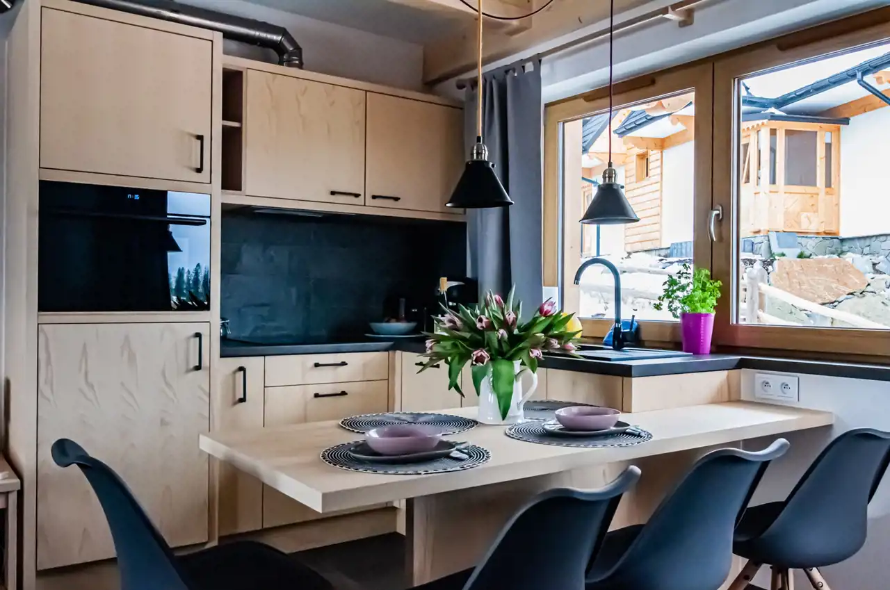 Domy zostały wybudowane z materiałów najwyższej jakości w stylu góralskim. Nowoczesność połączona została tutaj z tradycją przy zachowaniu maksymalnej funkcjonalności. Na połogach włoska ceramika oraz stylizowane wykładziny dywanowe. Ściany częściowo wyłożone drewnem naturalnym oraz włoską ceramiką. Łazienki wyposażone w armaturę Hans Grohe. Większość mebli wykonywana na indywidualne zamówienie. Aneks kuchenny wyposażony w sprzęt Franke. W każdym apartamencie zamontowany został klimatyczny, elektryczny kominek z funkcją grzania.