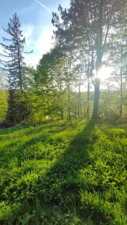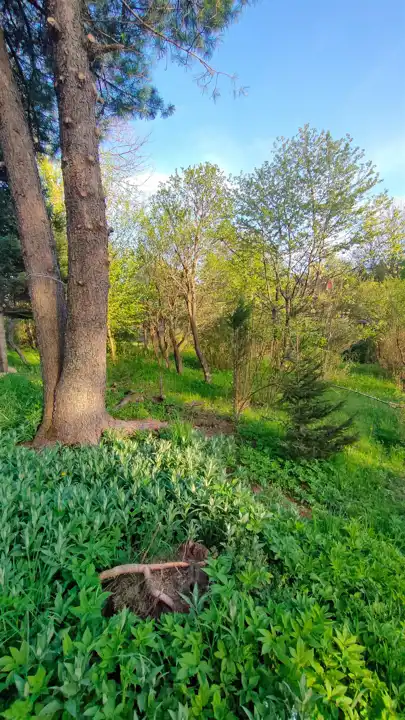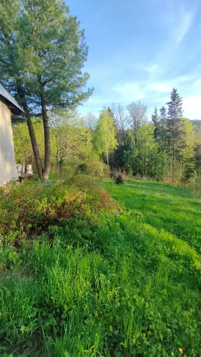 - Działka częściowo zagospodarowana, lekko nachylona, nieregularny