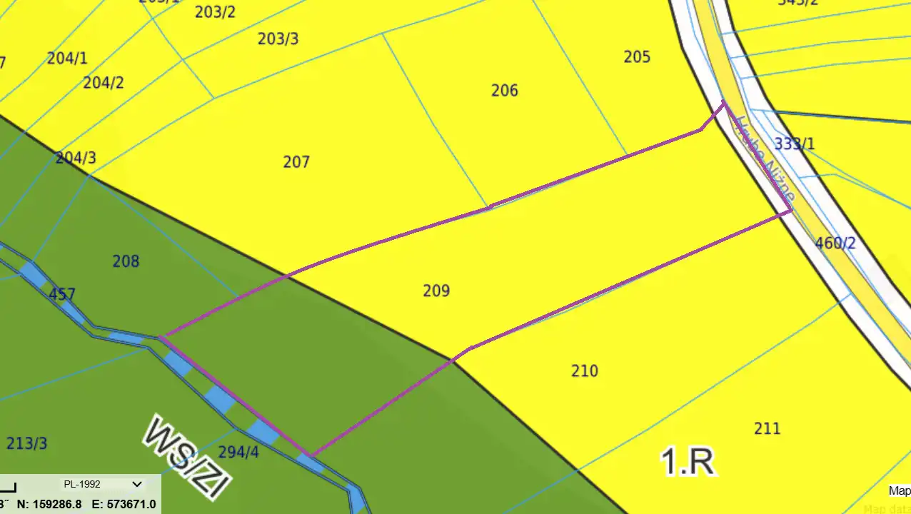 Teren objęty MPZP o symbolach !.R - tereny rolne oraz ZNZL - tereny zalesione.