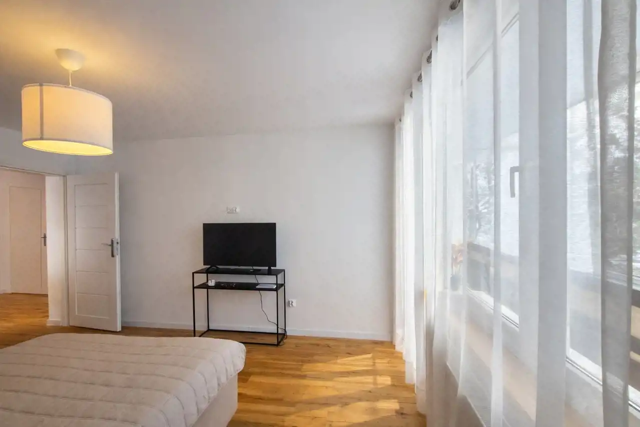 dwóch ustawnych sypialni z jednej wyjście na widokowy balkon,