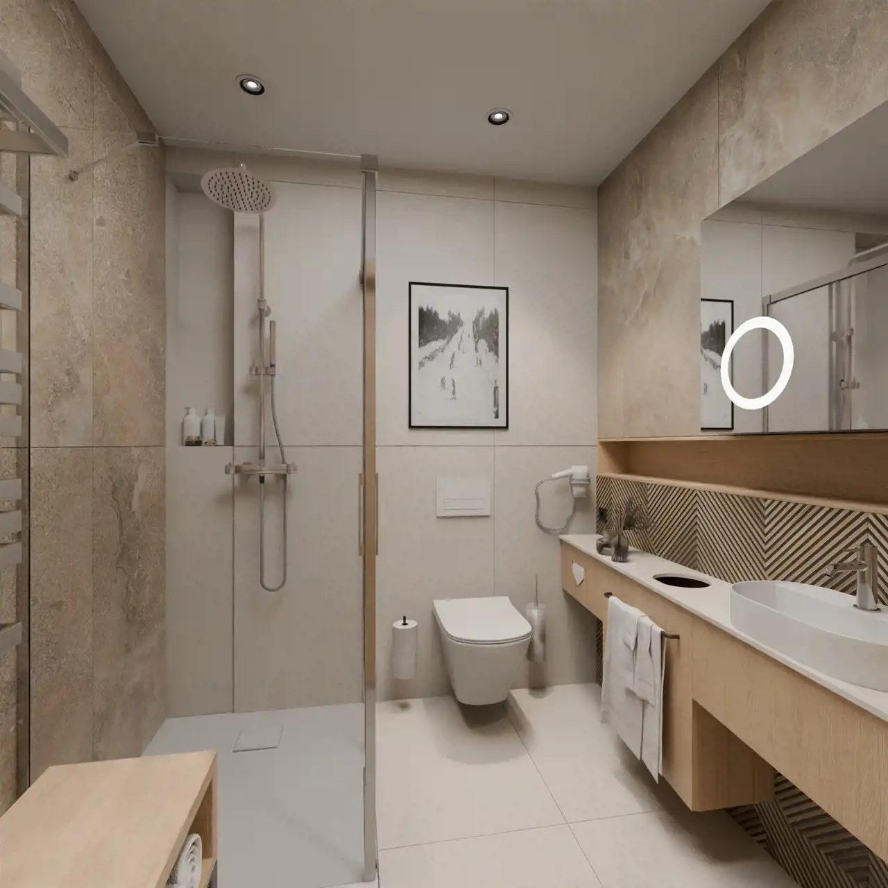 Dzięki przemyślanemu układowi pomieszczeń oraz starannie dobranym dodatkom każdy apartament staje się nie tylko funkcjonalnym miejscem pobytu, ale także przestrzenią, w której można poczuć ducha Podhala.